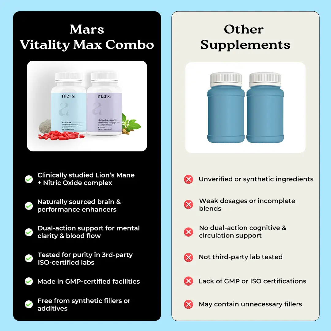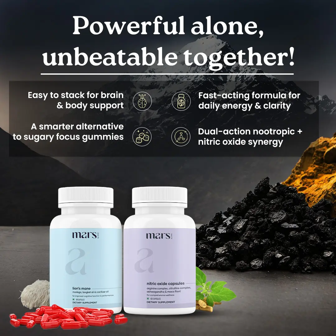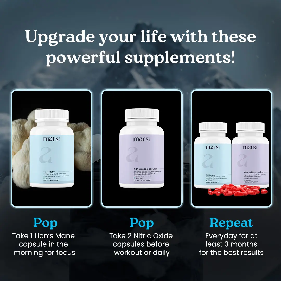 The Mars Bio-Hacker Bundle combines Lion’s Mane & Nitric Oxide for better stamina performance. It includes Ashwagandha, non-GMO, and 3rd party lab-tested ingredients. Enhances energy, supports immunity, and concentration. Perfect for those seeking balanced vitality.