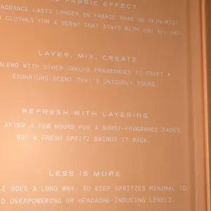 ·Spritz lightly on clothing.