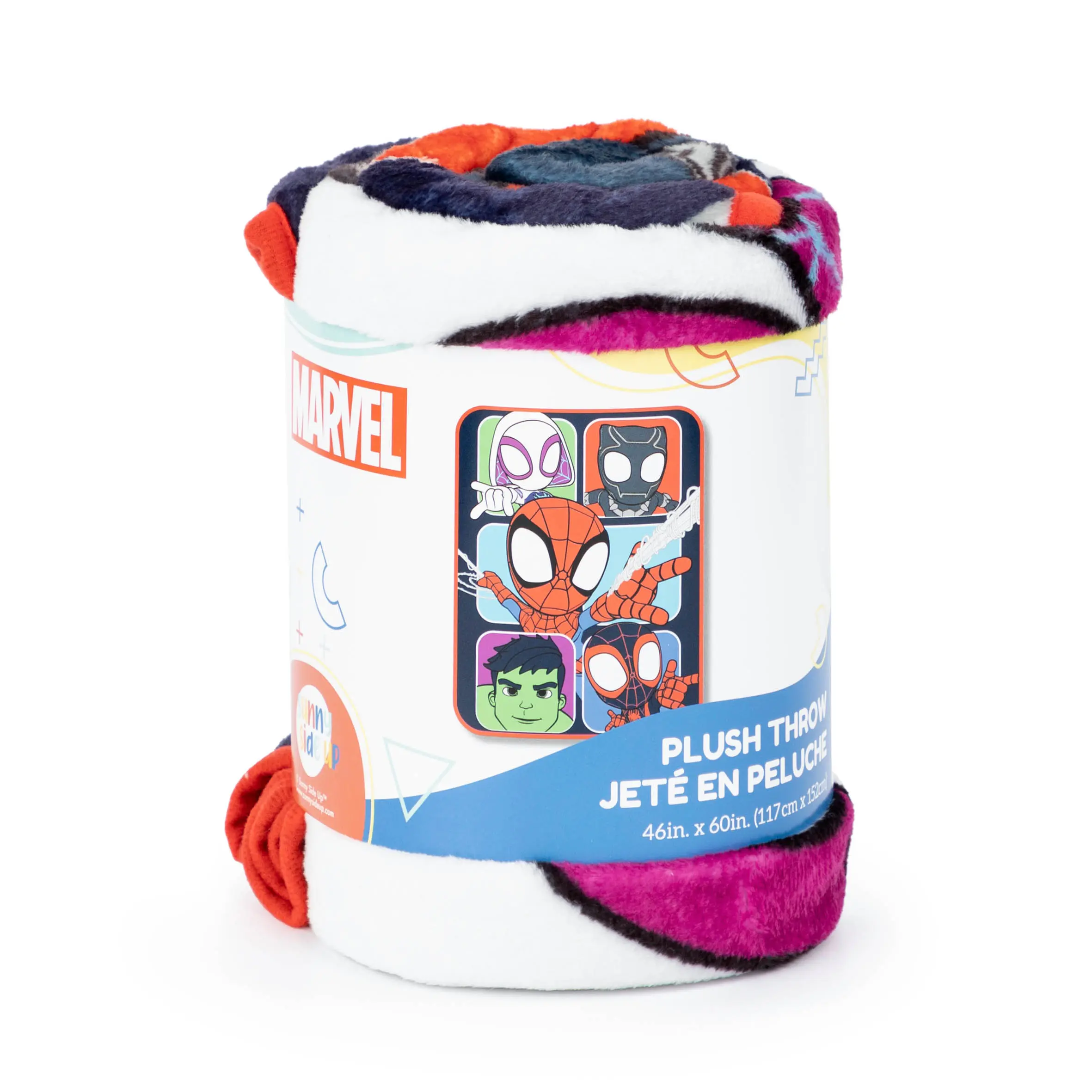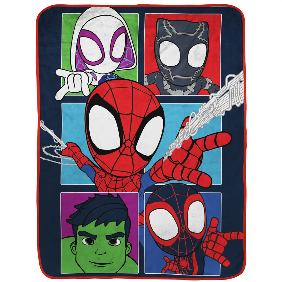 Calling all Marvel Avengers fans! Enjoy the comfort, warmth, and coziness of this Spidey & His Amazing Friends throw blanket all year round! Ideal for a kid's bedroom, living room or to take in the car for fun-filled road trips. Kids will be excited to toss this throw blanket over existing bedding for an additional layer during the cold months, or to drape over a chair while reading a book. The adorable cuddly throw features vibrant designs of fan favorites Spidey, Miles Morales, Ghost Spider - Gwen, The Hulk, and Black Panther. Sure to bring sweet dreams and endless smiles. At Sunny Side Up, our collection of bedding radiates sunshine and positivity. We believe in adding a touch of brightness to every bedroom!