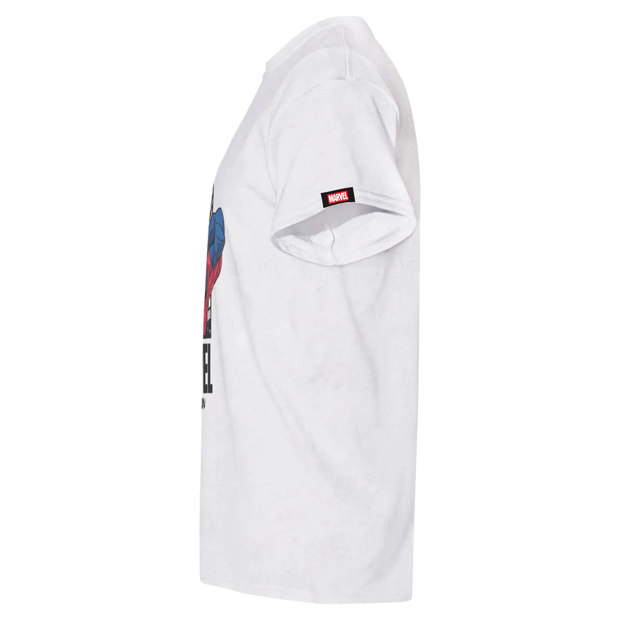 For once, Peter Parker's spider-sense isn't tingling because of danger; it's tingling because of how awesome the officially licensed Marvel Spider-Man Friendly Neighborhood Logo Men's T-shirt! This unique tee features a framed Spider-Man doing the iconic hand gesture and the text "Marvel Spider-Man" in bold black embroidery printed below. Put in the maximum effort and get Marvel-ous with some awesome new officially licensed Marvel apparel for the entire family today!