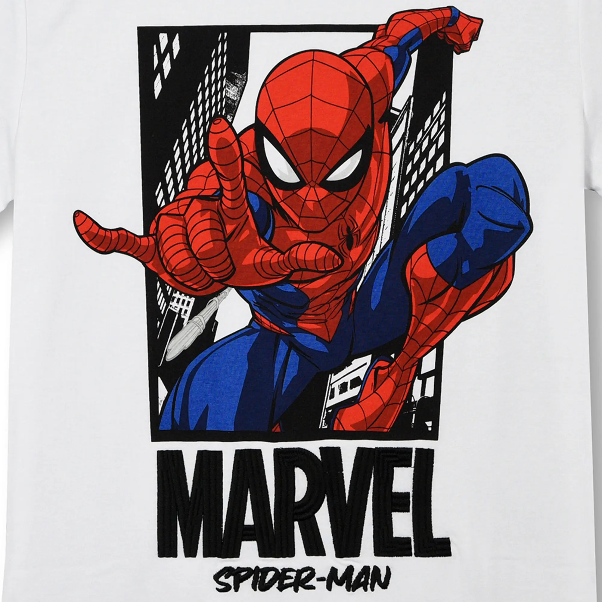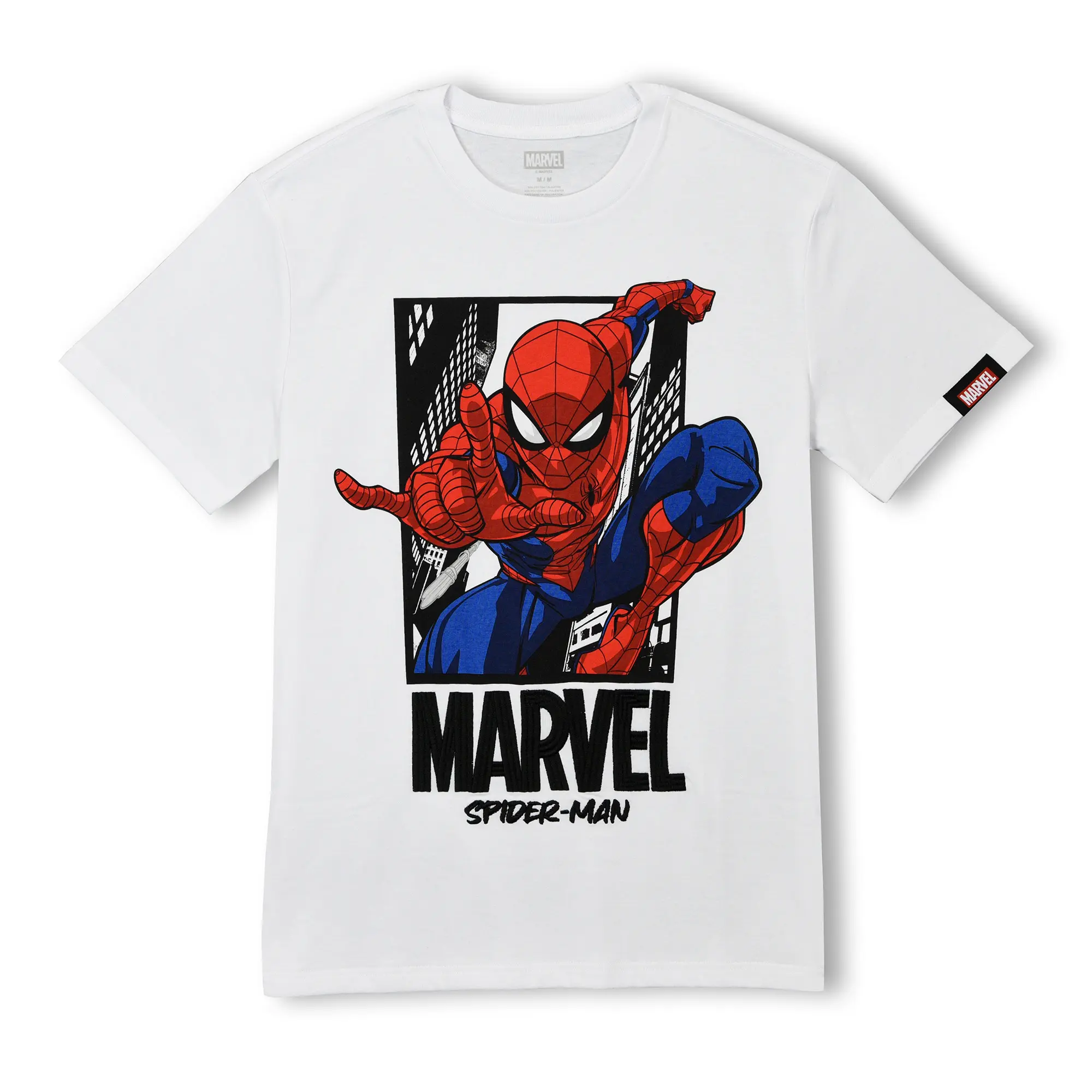 Swing into classic comic book action with this stylish new men's t-shirt that is perfect for every occasion! Featuring the iconic Spider-Man alongside "Marvel Spider-Man" in embroidery printed across the front.
