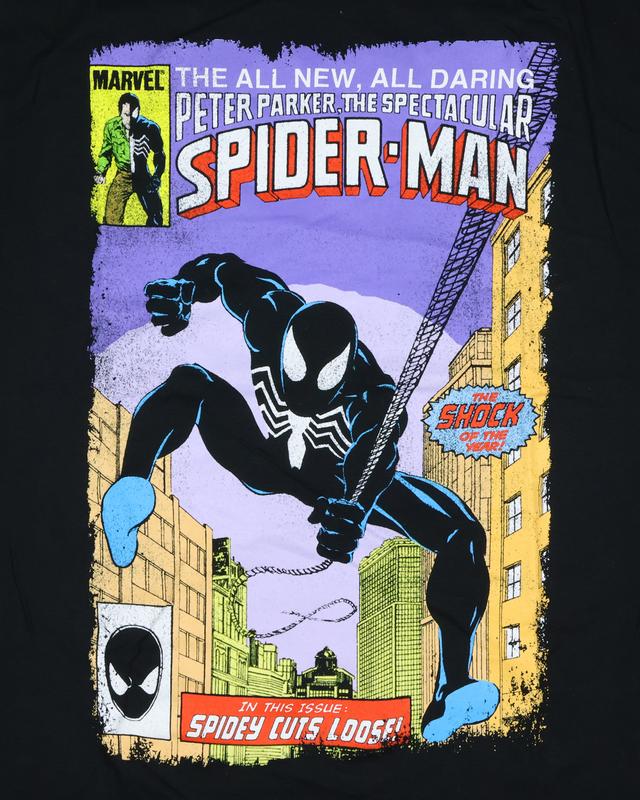 It’s made from 100% cotton, so it's soft, breathable, and easy to throw on whether you're heading out or staying in. The fit works with just about anything—jeans, joggers, even pajama bottoms—and the print holds up in the wash, so you don’t have to baby it. This one's a solid pick if you're into characters with bite and want something cool to rep that fandom in your everyday lineup. Bold Comic Design: This Marvel tee features a bold, comic-style Venom graphic with a Spider-Man logo text and “Peter Parker The Spectacular” print. The sharp contrast of bright colors against the black fabric brings the artwork to life Everyday Style: This short-sleeved shirt blends comfort and style, making it a solid go-to for a wide range of outfits. Whether worn with jeans, joggers, or shorts, this top transitions easily from day to night Great for Any Occasion: Whether hanging with friends, heading to class, running errands, or lounging on the couch., this tee is a solid choice for everyday fanwear Simple Care: This shirt is easy to care for with a wash-and-go approach. Wash cold with like colors and tumble dry low for best results Bold Pick for Fans: This tee adds a dark twist to classic Spider-Man gear, appealing to fans who appreciate both the heroic and sinister sides of the story. With its vivid colors and recognizable comic styling, it’s a solid addition to any Marvel collection