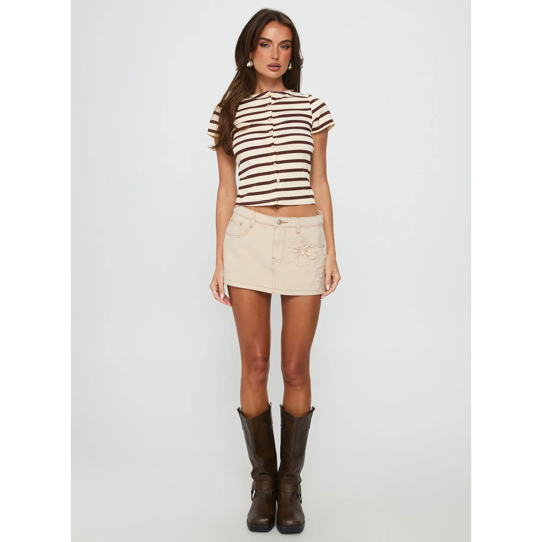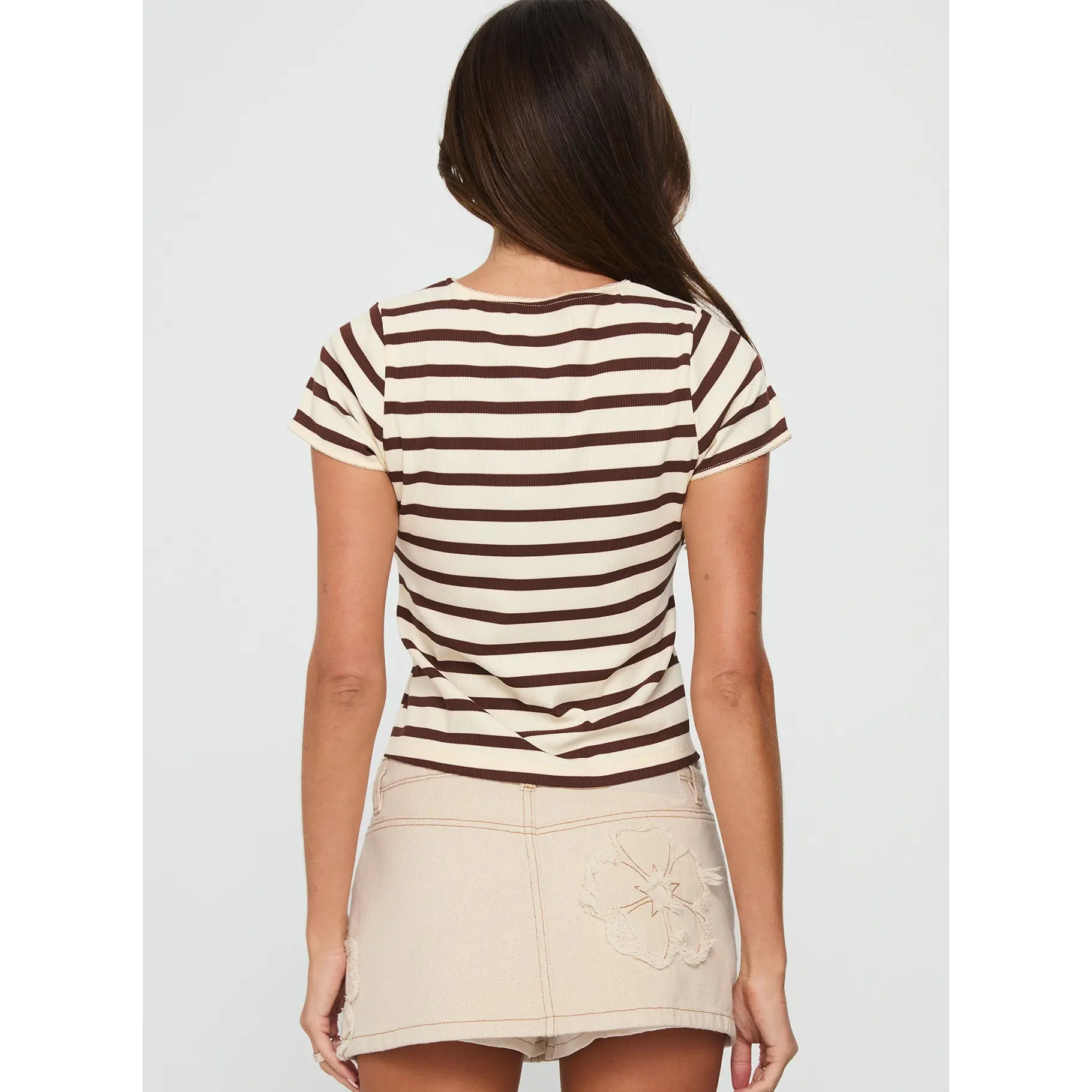 5. Marvella Button Up Top Beige / Brown Stripe