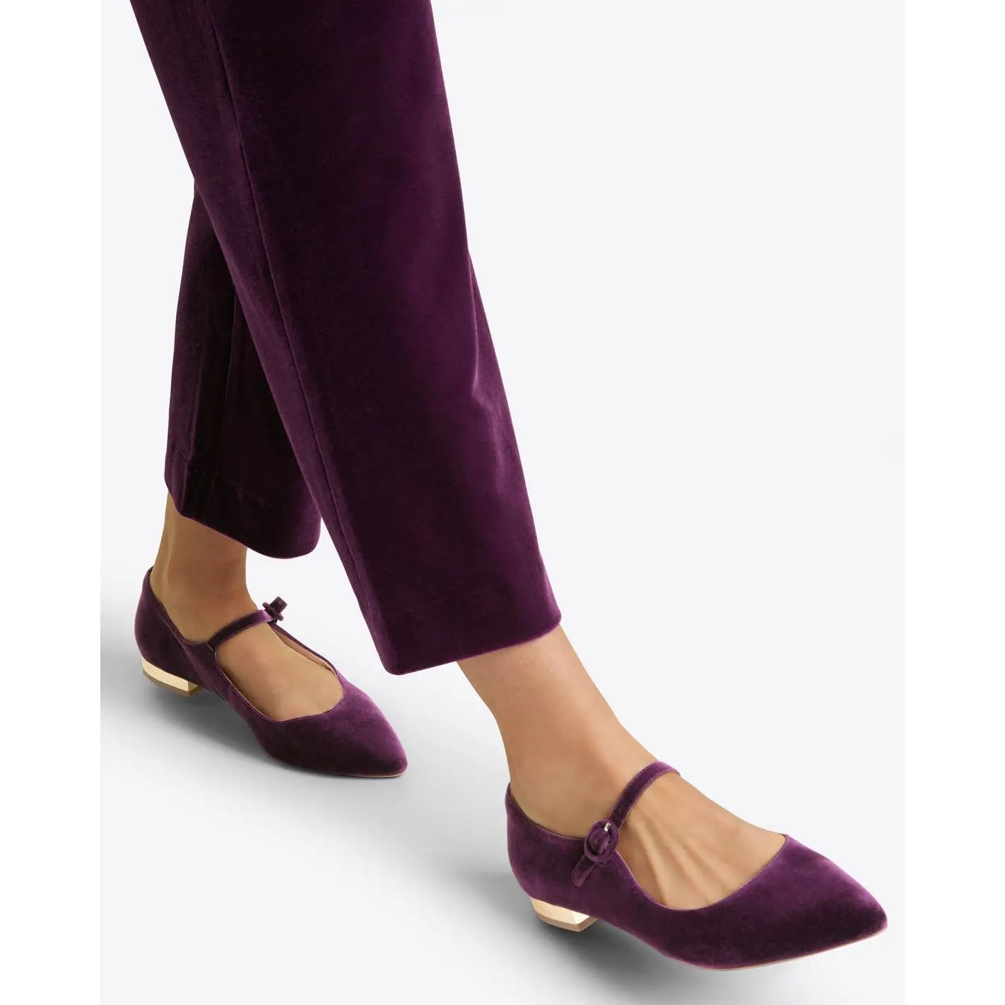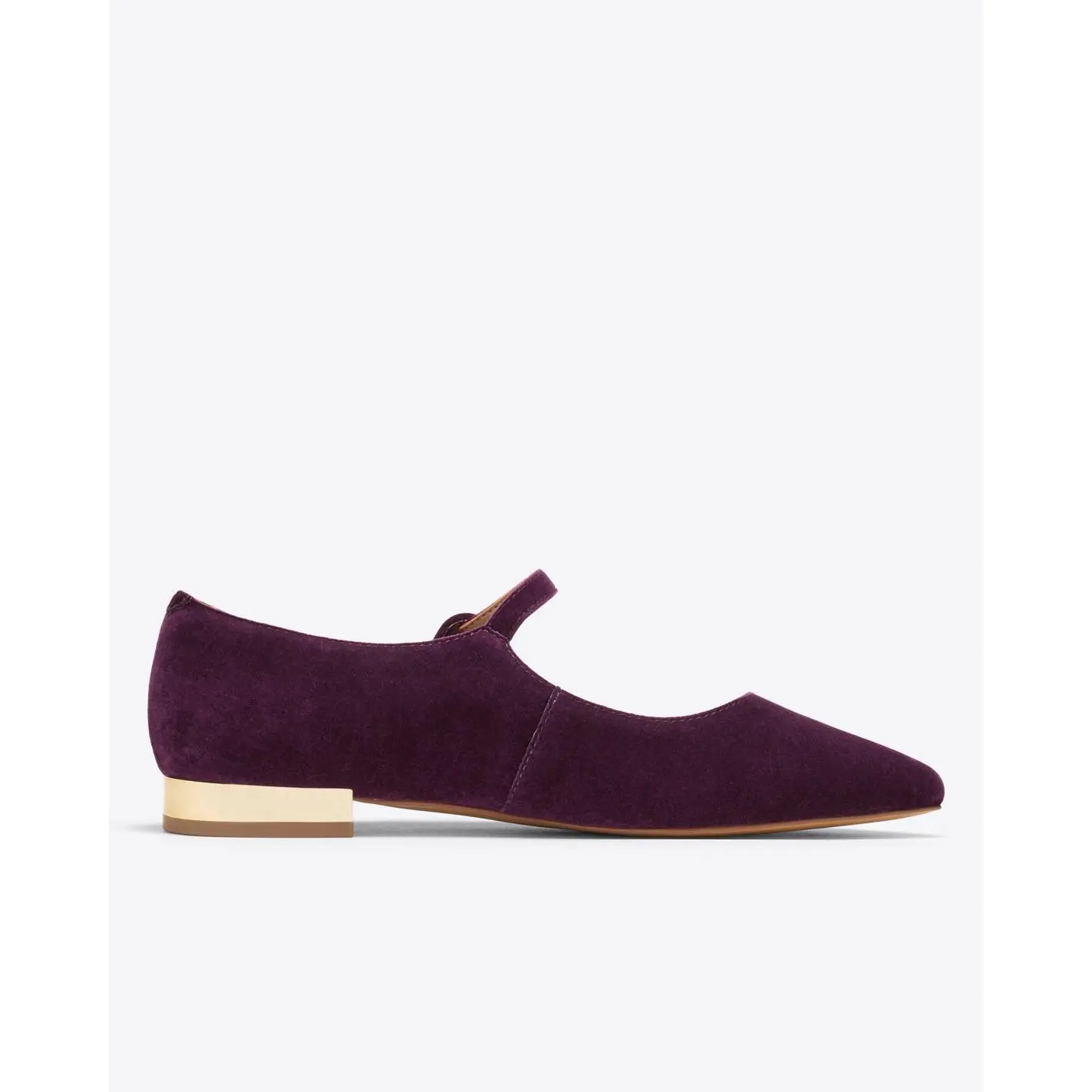 Schoolgirl crush. Our Adeline Mary Jane Flats in Plum Velvet were inspired by a classic, but we've updated them with a gold 3/4-inch heel and a stylish rounded shape. Bonus: they're padded so they'll be as comfortable as your favorite sneakers!