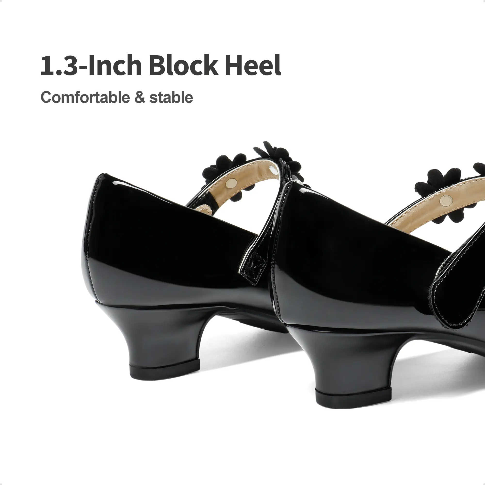 Comfortable Interior: With a latex insole and smooth PU leather lining, these girl's mary jane low heels will provide little ones with a comfortable fit.