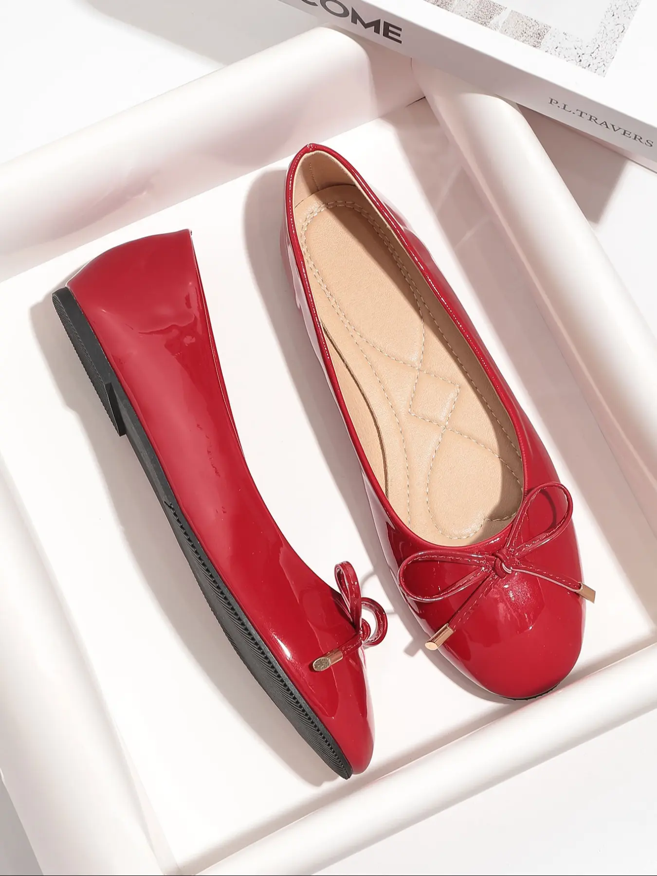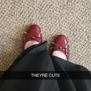 Shape and size: They’re quite a bit shiny, almost a rubbery material and I had to be more careful when wearing them to not accidentally scuff them up but overall cute! I’m a size 8 and they were a little bit longer.