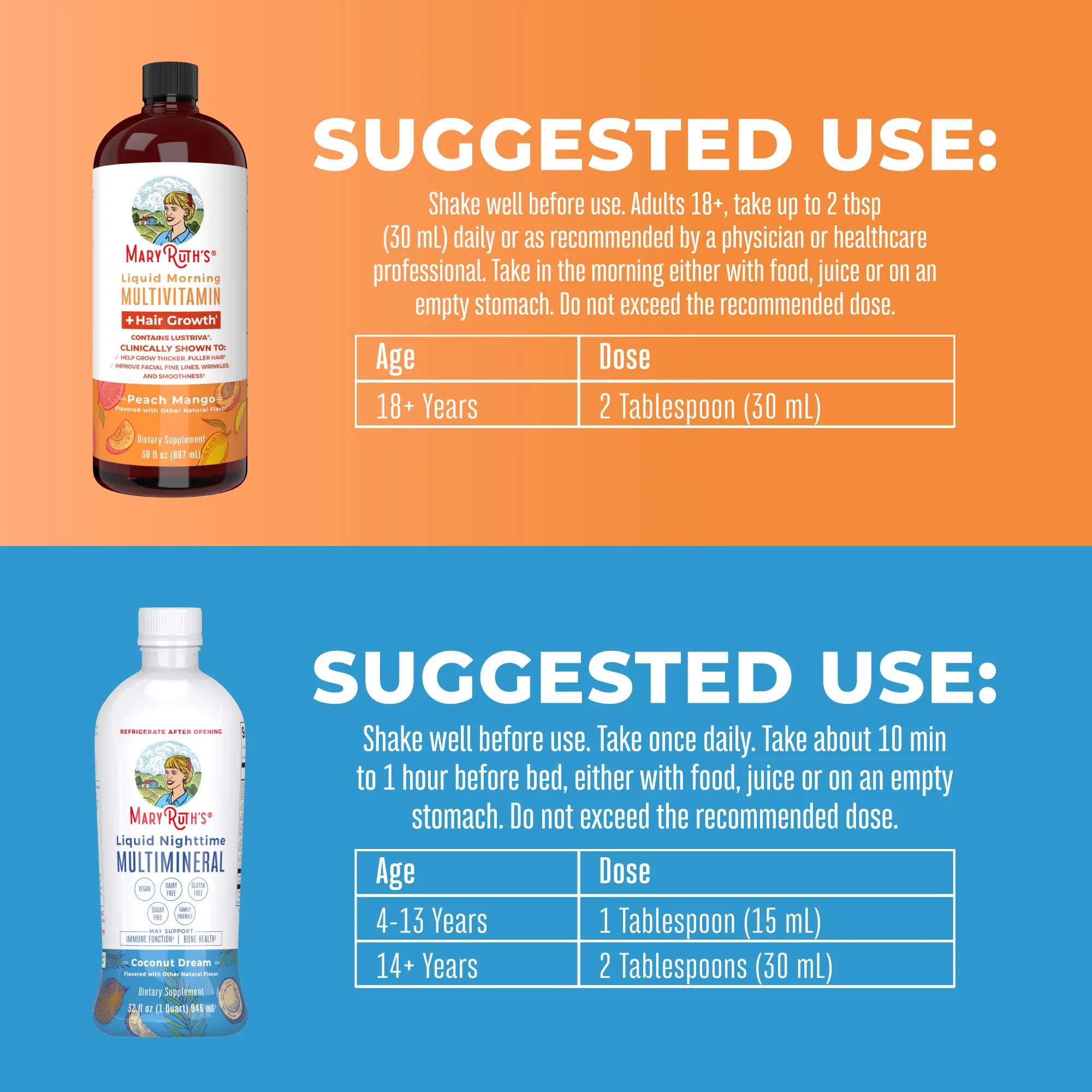 For Most Lifestyles: MaryRuth's Liquid Morning Multivitamin + Hair Growth is Vegan, Dairy Free, Gluten Free, Nut Free, Sugar-Free, and Made in a GMP Facility. Third Party Tested. Clean Label Project Certified. B Corp Certified.