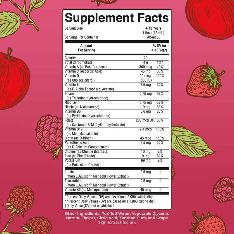 Vegan Multivitamin: Children will enjoy this delicious apple berry blast flavored liquid on its own or mixed into their favorite beverage!