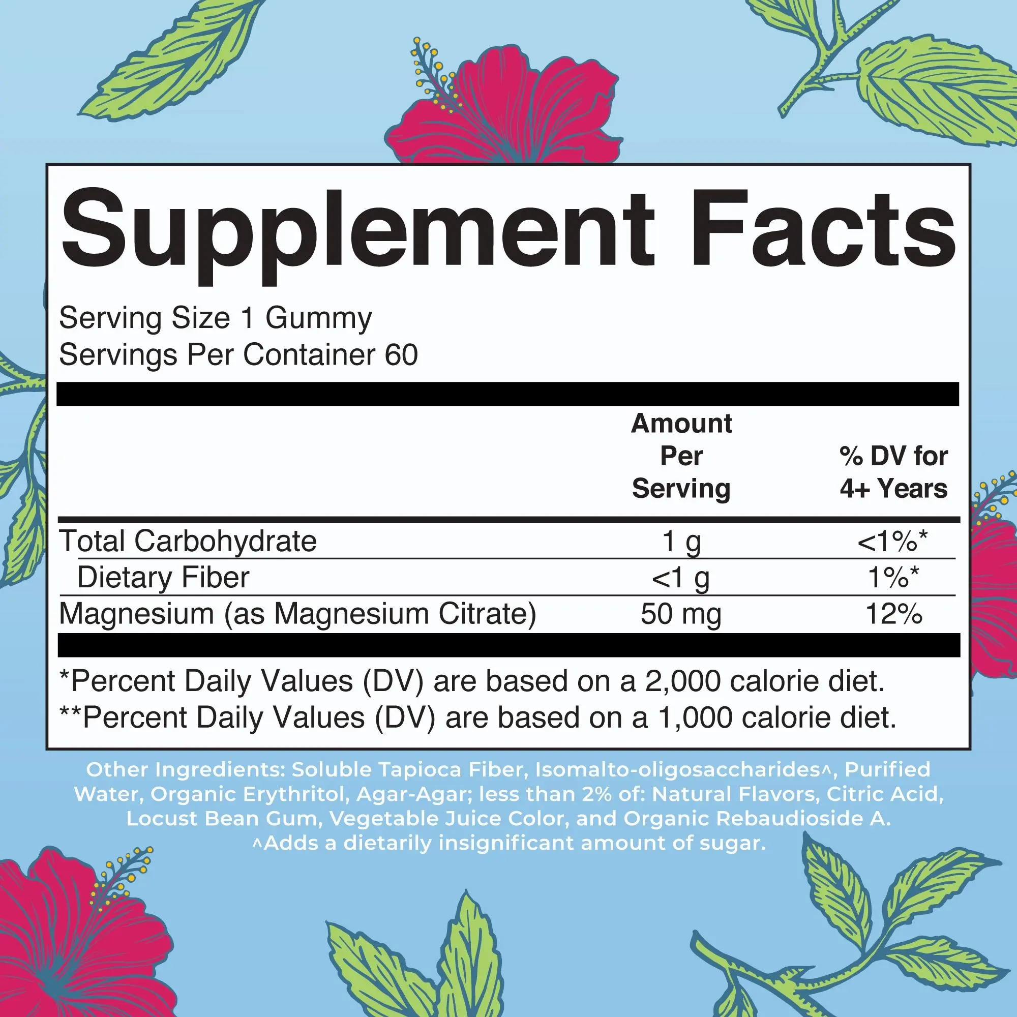 Magnesium Gummies for Kids: Delicious natural hibiscus-flavored magnesium gummies that your kids will love! Support calm with this magnesium citrate sleep supplement for kids.