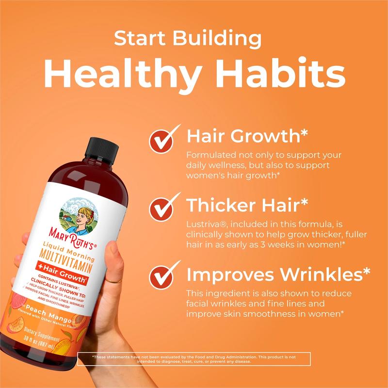 For Most Lifestyles: MaryRuth's Liquid Morning Multivitamin + Hair Growth is Vegan, Dairy Free, Gluten Free, Nut Free, Sugar-Free, and Made in a GMP Facility. Third Party Tested. Clean Label Project Certified. B Corp Certified.