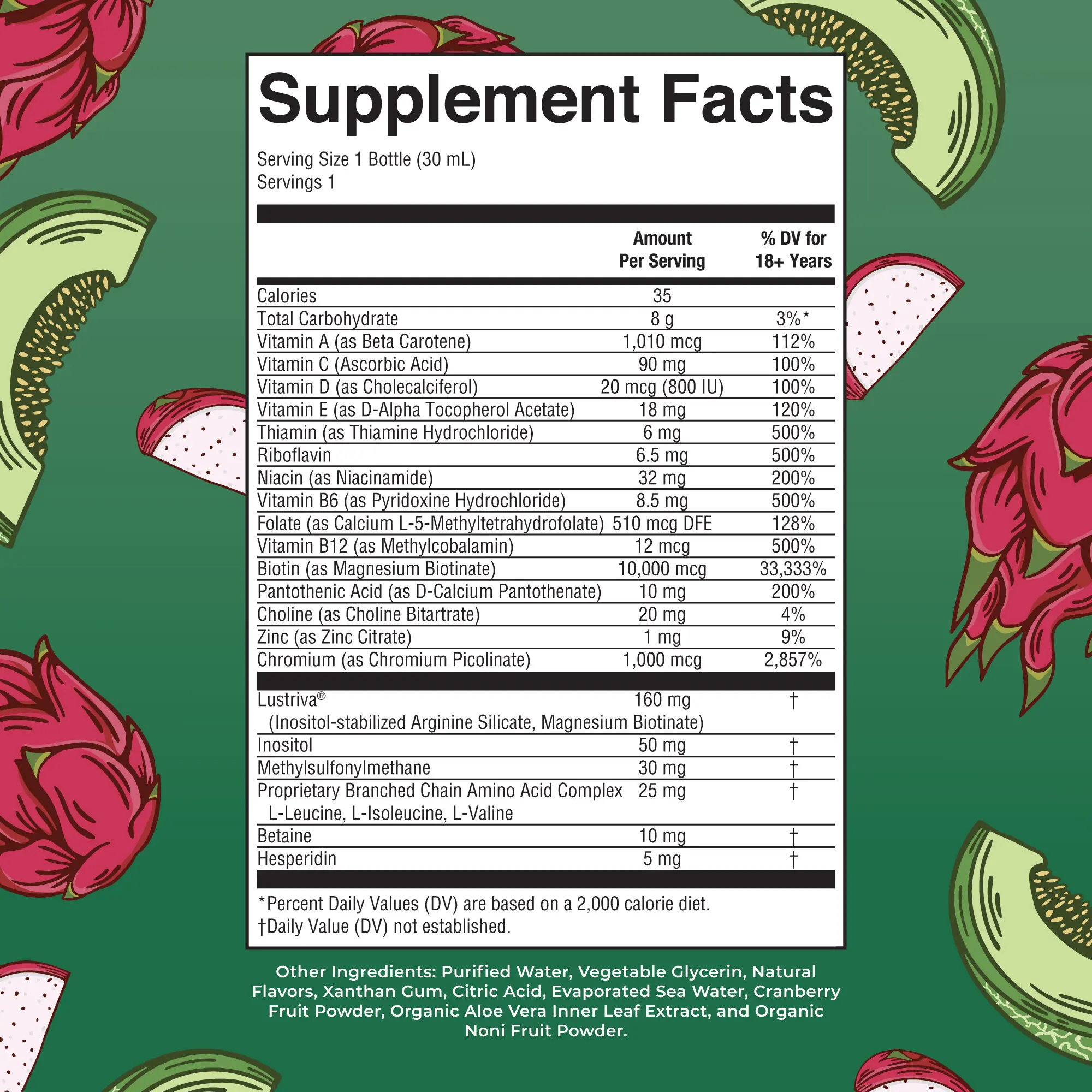 Suggested Use: Shake well before use. Adults 18+, take up to one bottle (30 mL) daily or as recommended by a physician or healthcare professional. Take in the morning either with food, juice, or on an empty stomach. Do not exceed the recommended dose.