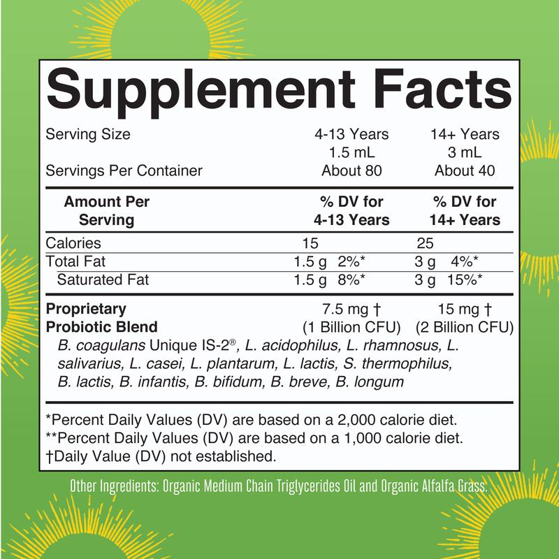 Flavorless Liquid Probiotic: Our vegan USDA Certified Organic Liquid Probiotic is an easy-to-take liquid formulated with 13 unique probiotic strains. This probiotic for men, women, and kids can easily be dosed for the whole family! This proprietary probiotic blend contains up to 2 billion CFU per serving.