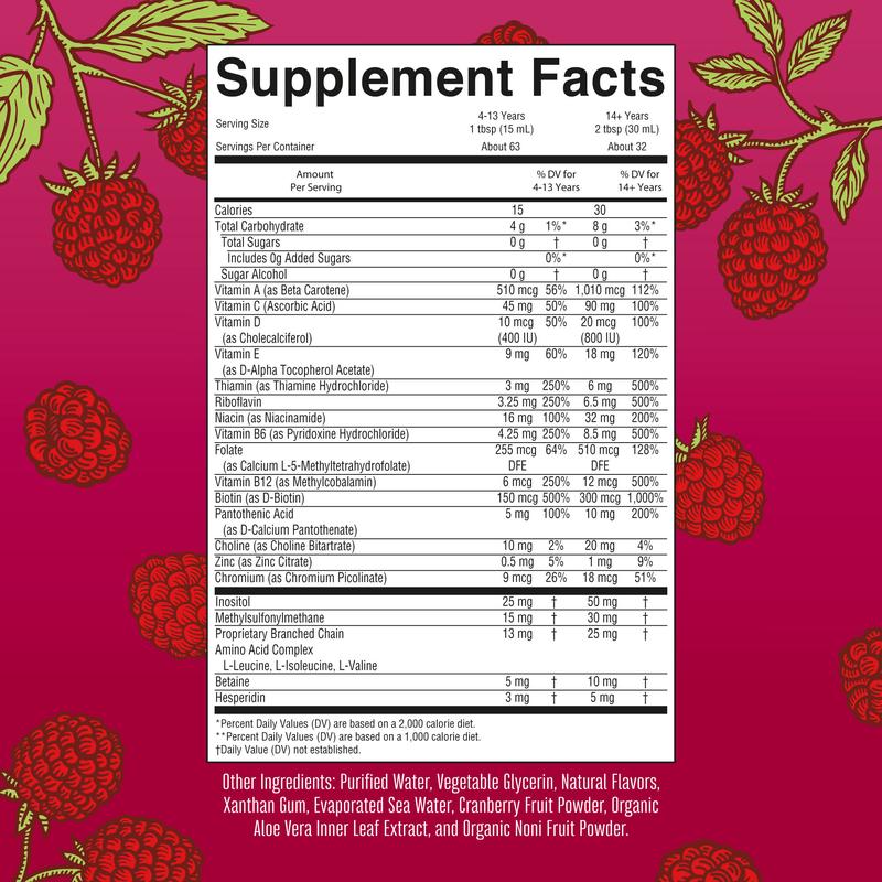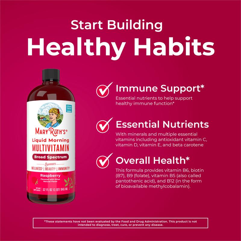 Liquid Daily Multivitamin: Support your body’s nutrient needs, all with no hard-to-swallow pills. MaryRuth’s delicious Raspberry Liquid Morning Multivitamin is an easy-to-take liquid with minerals, amino acids, and multiple essential vitamins including antioxidant vitamin C, vitamin D, vitamin E, and beta carotene.