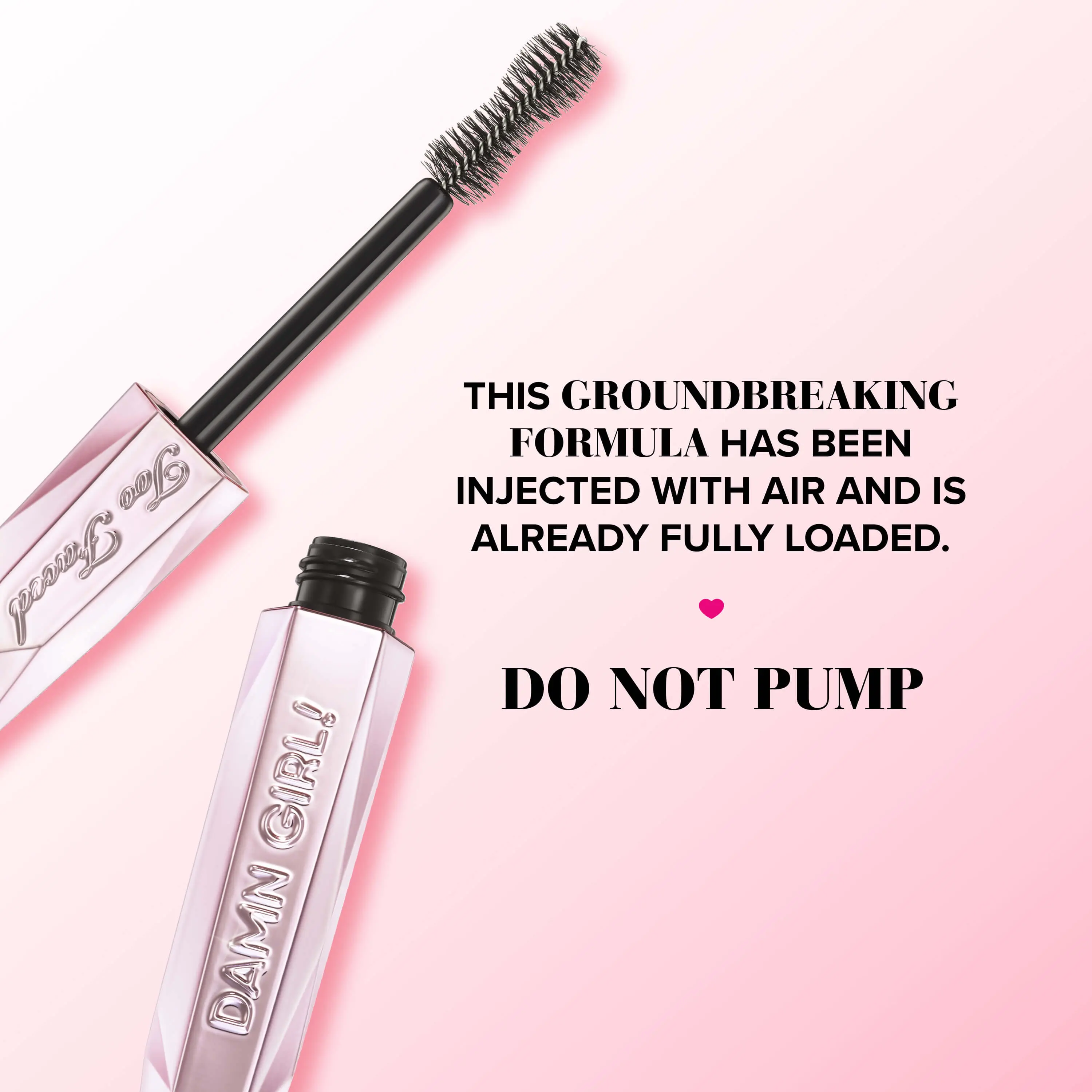 Damn Girl's revolutionary creamy mousse formula was developed with a special blend of whipped melting waxes that deliver an immediate full load of extreme volume without a heavy feel. Innovative polymers keep lashes flexible while lifting, lengthening, and locking-in 24 hours of smudge-and flake-resistant curl.