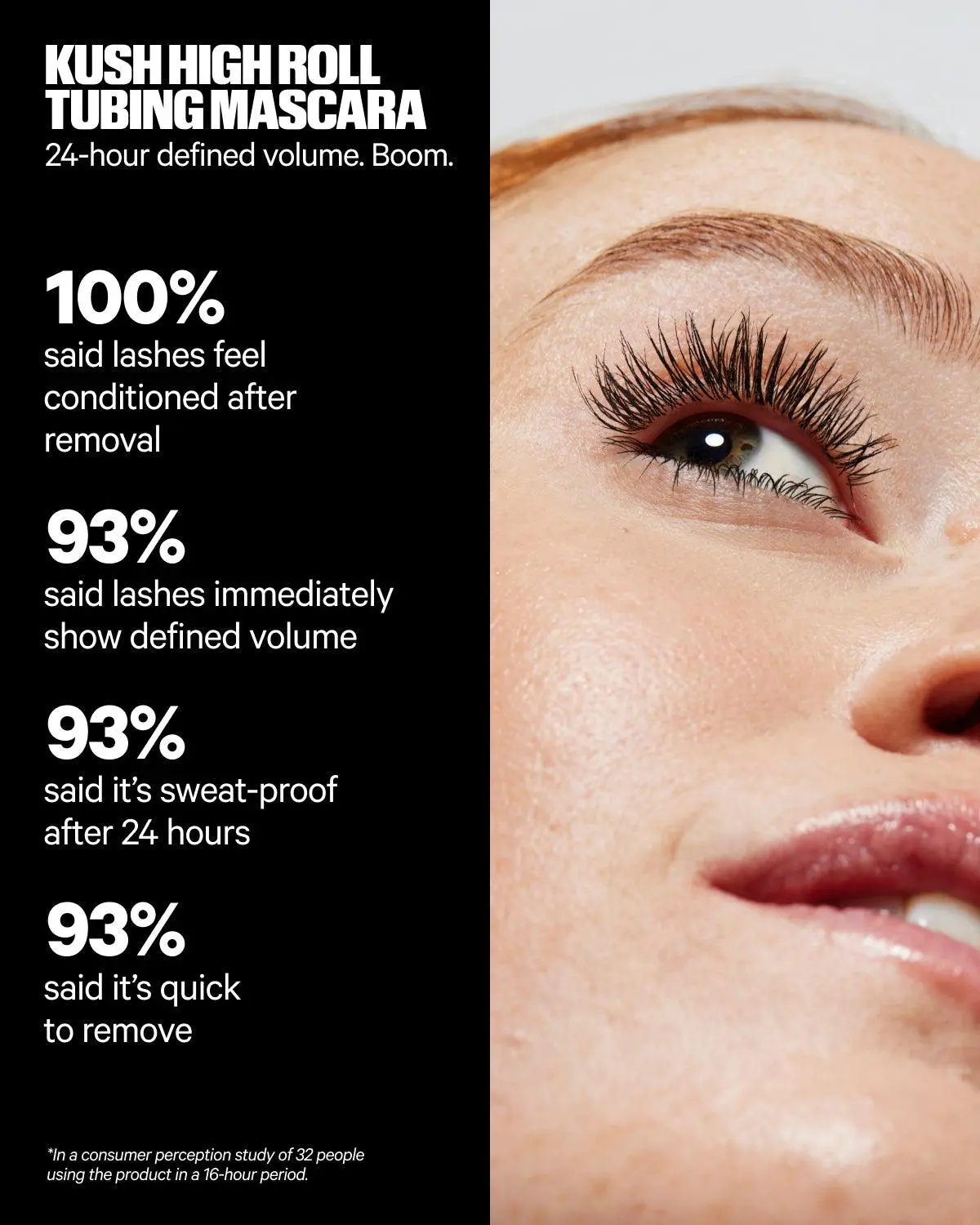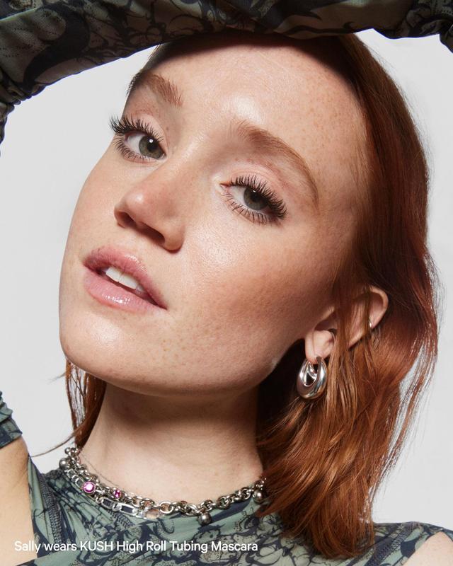 KUSH High Roll Tubing Mascara What it Is A clean tubing mascara that separates every single lash for high definition, natural volume, and length without smudging or flaking for up to 24 hours. This tubing mascara is clean, vegan, cruelty-free, paraben-free, and alcohol-free. CLINICAL RESULTS -100% said lashes feel conditioned after removal -93% said lashes immediately show defined volume -93% said it’s sweat-proof after 24 hours -93% said it’s quick to remove *In a consumer perception study of 31 people using the product in a 24-hour period. 0.3 FL OZ / 9 ML How to Use -Wiggle along the base of lashes upward from root to tip. -Apply 1-2 coats while formula is still wet for definition and natural volume. -Remove easily by soaking lashes in warm water for 30 seconds, then gently massage fingers over lashes until tubes roll off. No tugging or pulling required. Follow with cleanser if needed. Ingredients -High Roll Tubing Technology wraps lashes in sweat-proof tubes that quickly + easily roll off to remove. -Hemp seed, castor, and sunflower seed oils condition, nourish, and keep lashes soft. -Carnauba and jojoba wax provide a creamy texture for natural volume and length.