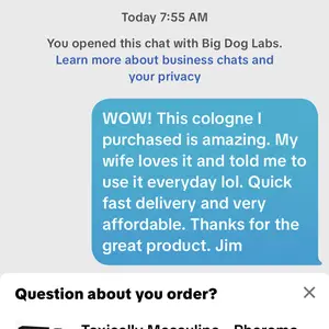 This my first time trying a TikTok cologne and i am speechless this product is a WOW 👌 and delivery was fast i got it 3 or 2 days before. I was shocked by the Quality compare to the price now I feel like I want to try other BIG DOG LAB products.