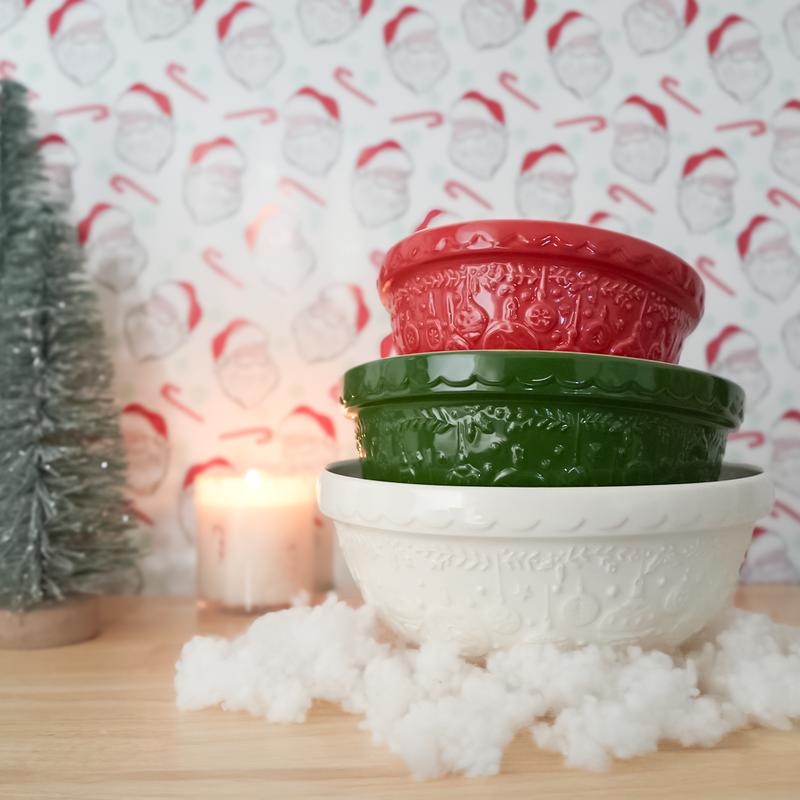 Welcome in the most wonderful time of year with Mason Cash's Deck the Halls Collection! Beautifully crafted with intricate, raised Christmas ornament designs, these limited edition Christmas bowls bring that festive spirit to every mix. The thick, embossed rim offers a more secure grip when mixing, while the textured rivets on the bottom of the bowls prevent them from slipping around atop your countertops. Durable enough for everyday food prep, storage, or serving, Mason Cash Deck the Halls bowls are made from chip-resistant earthenware that is safe for the dishwasher, freezer, and microwave. Use to serve holiday meals, whip up Santa's cookies, or gift to the Mason Cash lover in your life!