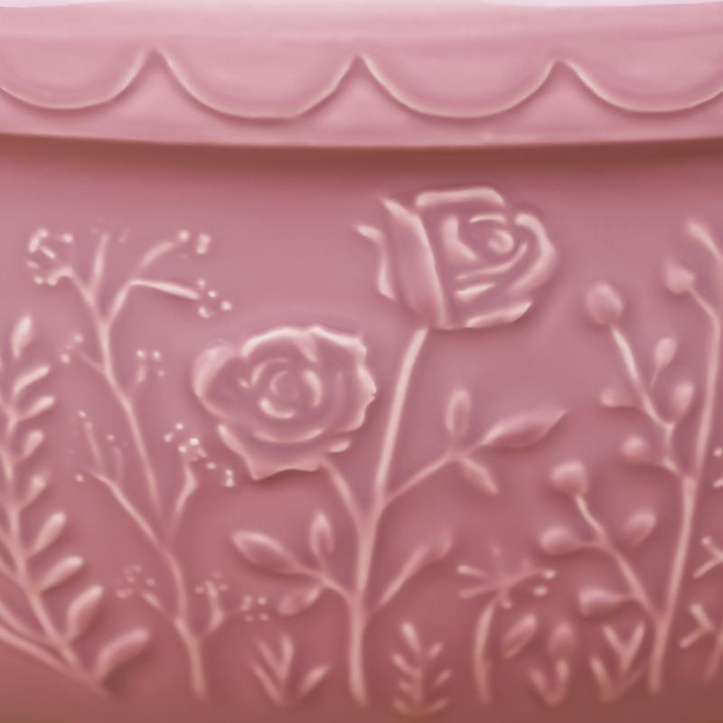 Β·Soft pink-colored glaze with an embossed rose pattern brings a natural charm to your kitchen