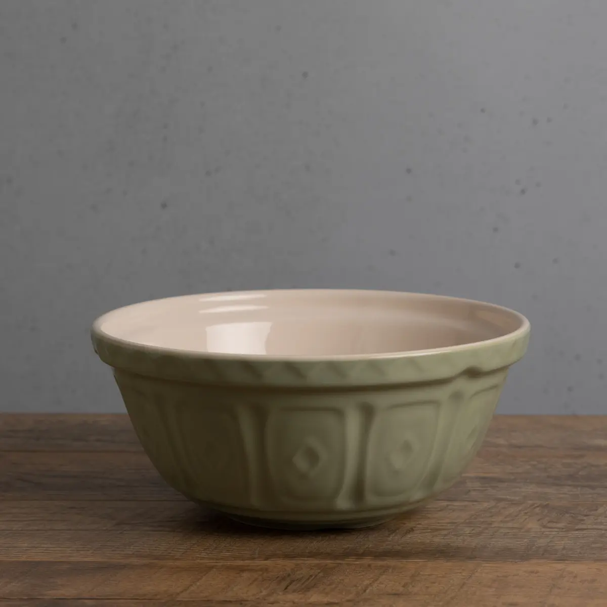 Cultivate a fresh new style in your kitchen with the Mason Cash Basil Collection S12 Mixing Bowl! Featuring Mason Cash's classic textured exterior, this bowl is ideal for tackling tough mixing jobs! The thick, embossed rims offer a more secure grip when mixing, while the textured rivets on the bottom of the bowls prevent them from slipping around atop your countertops. Durable enough for everyday food prep, storage, or serving, Mason Cash bowls are made from chip-resistant earthenware that is safe for the dishwasher, freezer, and microwave.