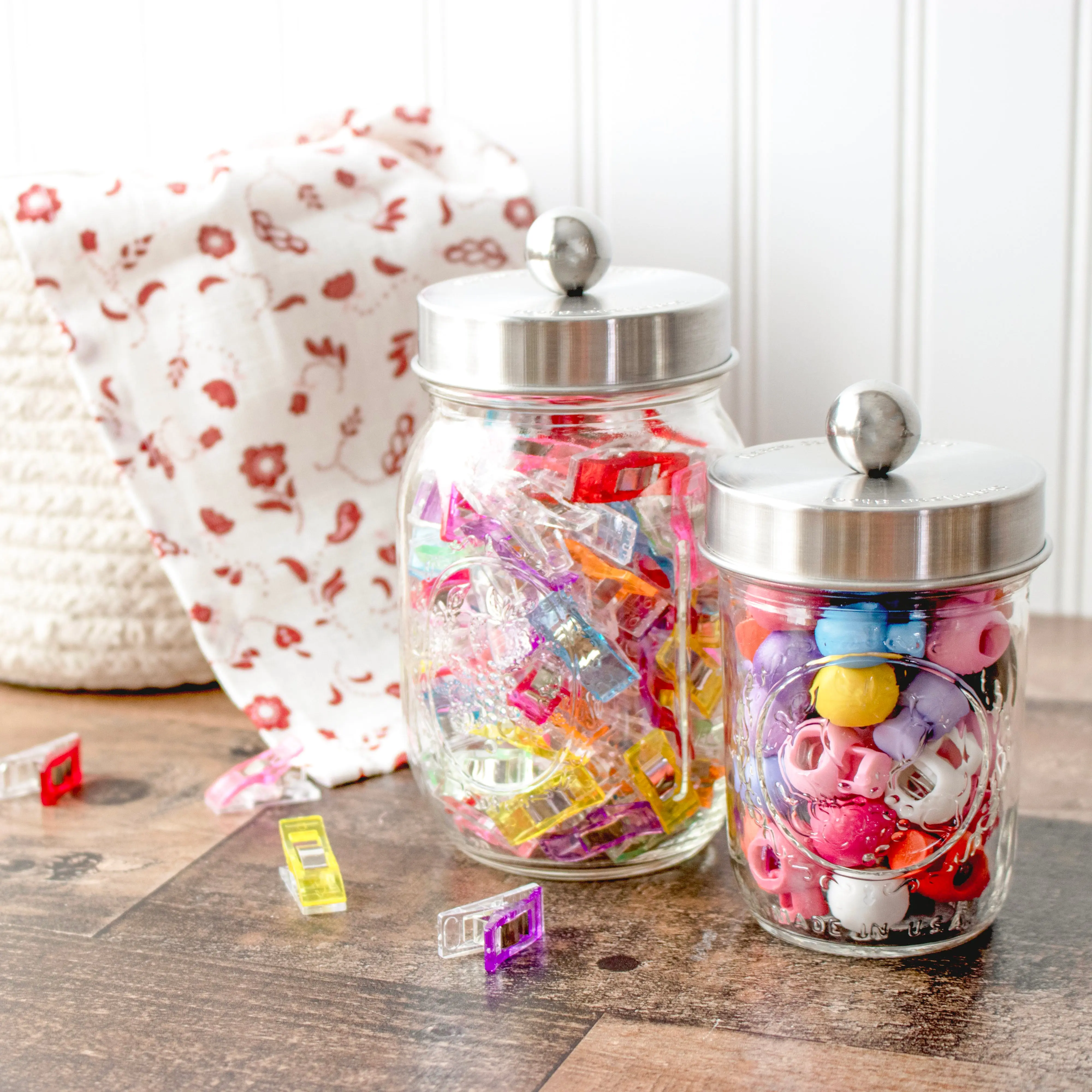 Love that even simple things like cotton balls and q-tips can now reside in my Mason jars. Easily pops over a wide mouth jar.