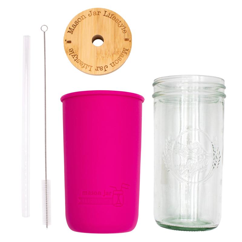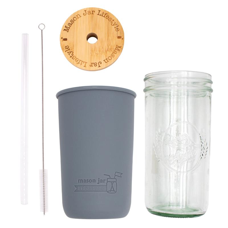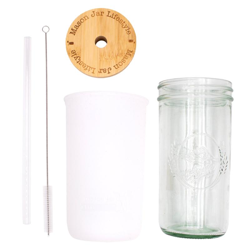 Durable and Stylish: Whether you’re sipping infused water, iced tea, or your favorite cold brew coffee, this reusable water bottle helps you reduce plastic waste while looking great. Plus, the silicone sleeve adds grip and cushion, protecting your jar from bumps and breaks.