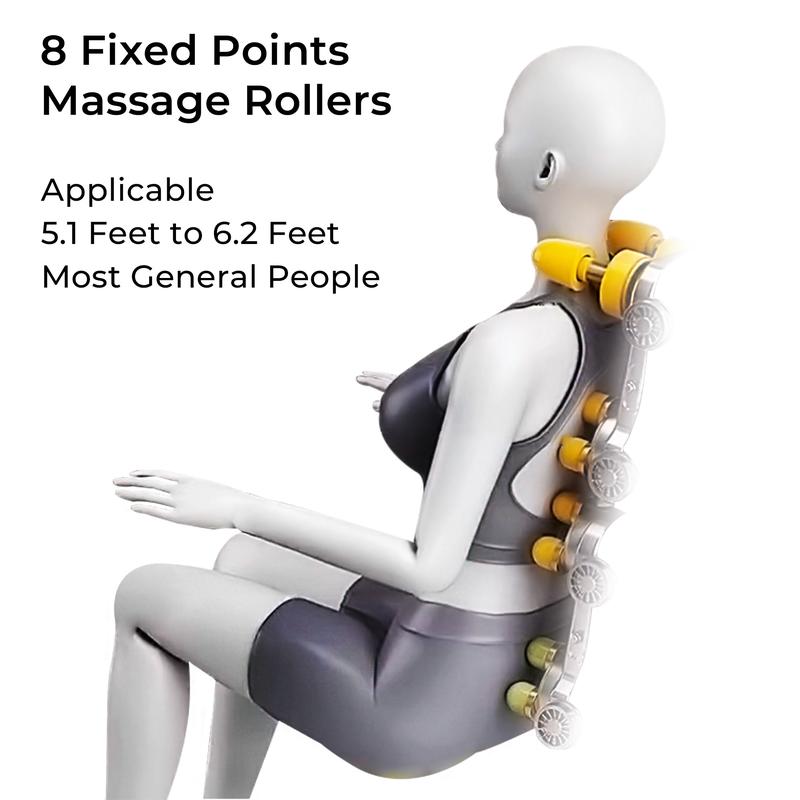 ·8 fixed massage rollers for back, can select for "Back Up" or "Back Down" separate massage and waist heating, 3 levels of adjustable massage intensity.