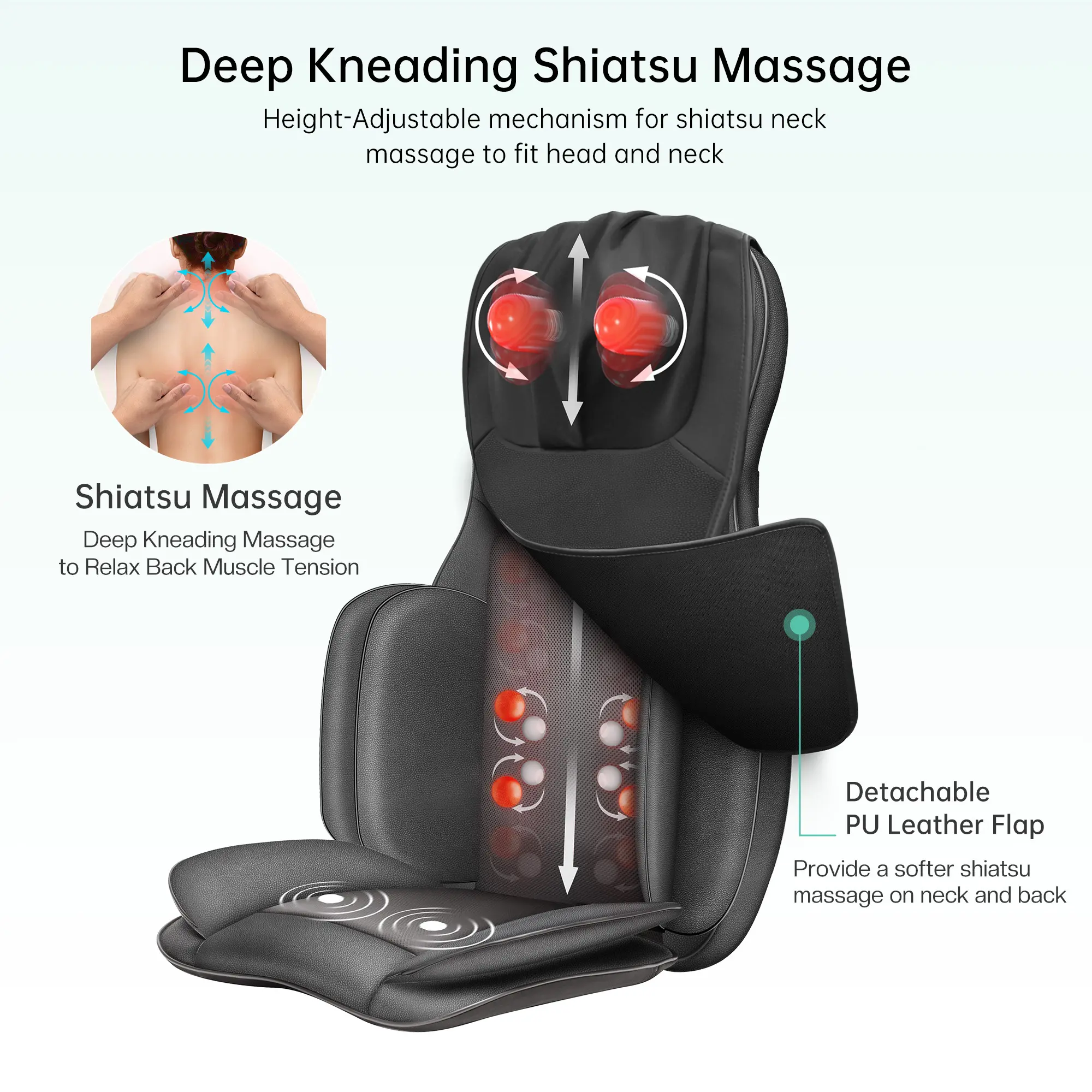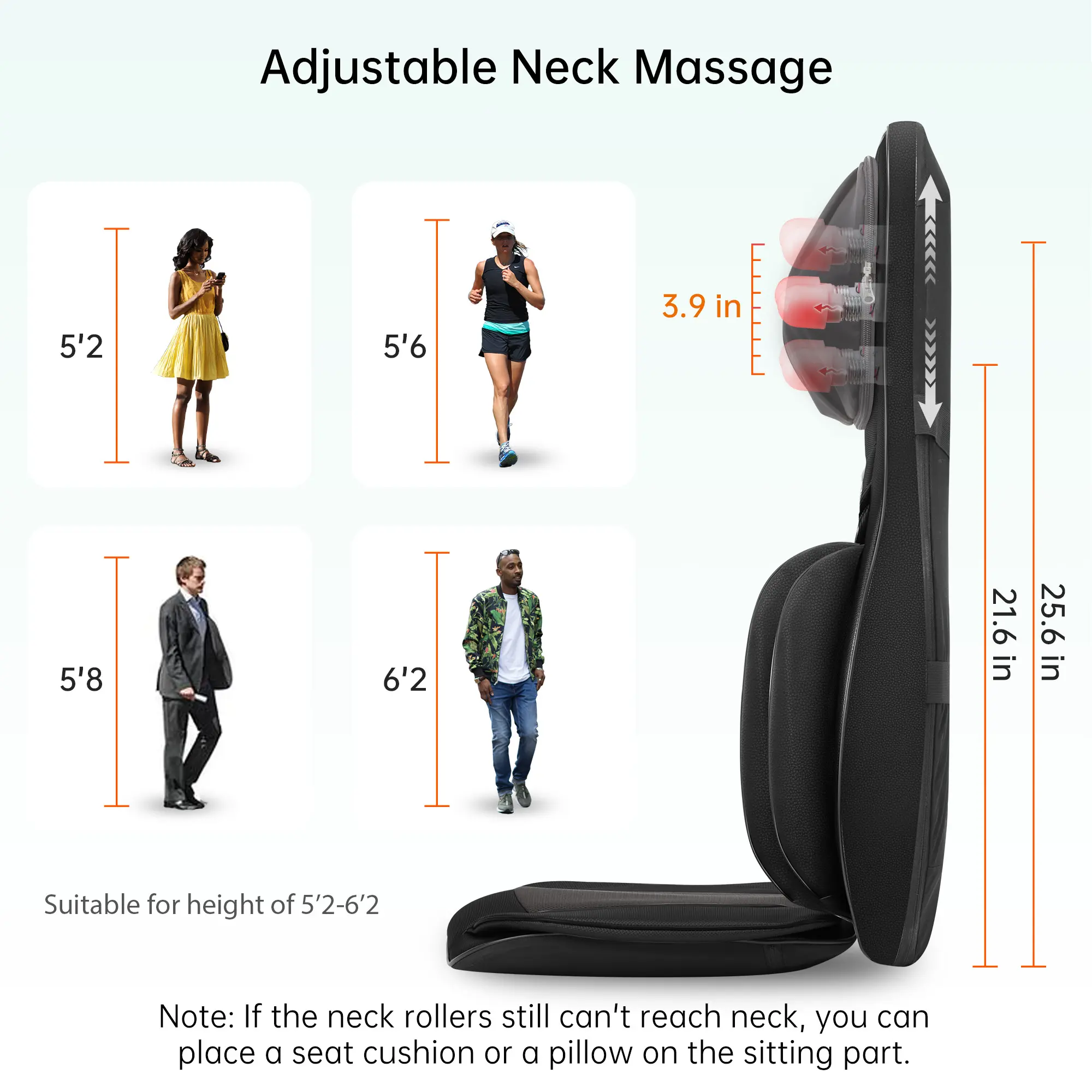 Ā·Adjustable Neck Massager: The chair massager includes 4 shiatsu rotation nodes to provide deep kneading massages for the neck and shoulder. The neck shiatsu balls can be adjusted up and down to fit specific users.