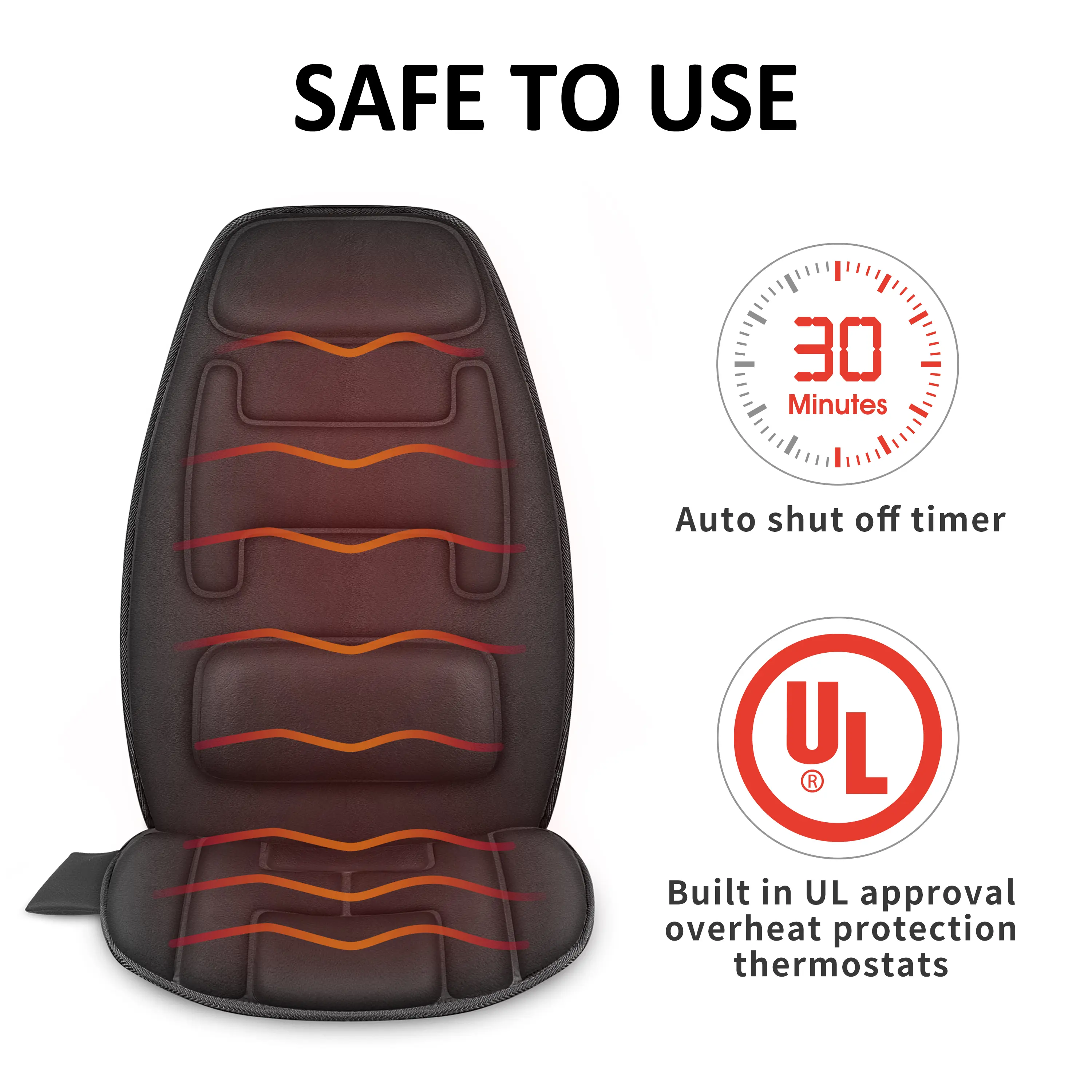 ·Fast Heating & Safe:The seat warmer has 2 heating levels for the full-back and seat area, provides heat therapeutic for back and hips, thighs. The back heater and seat heater can work separately. Fast heat-up, overheating protection system, and 30-minute auto shut-off for safe use.