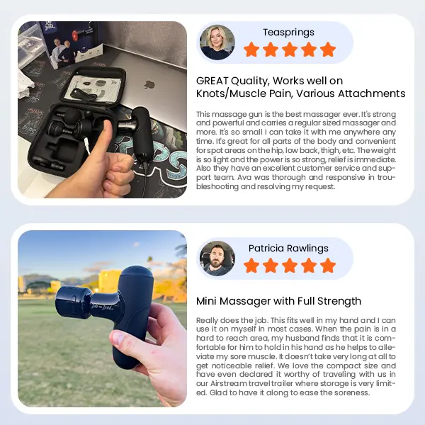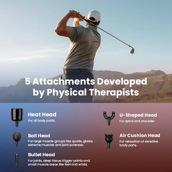 ·That's the Most Compact Design Ever: Q2 Pro Mini Massage Gun strikes a never-before-seen balance between power and size (5.7”L x 3.4”W x 1.8”H, Weighing in 0.95lb/0.43KG), making it a convenient option for getting the quality relief on the go with portable hand case. And 5 interchangeable massage heads target different muscle groups.