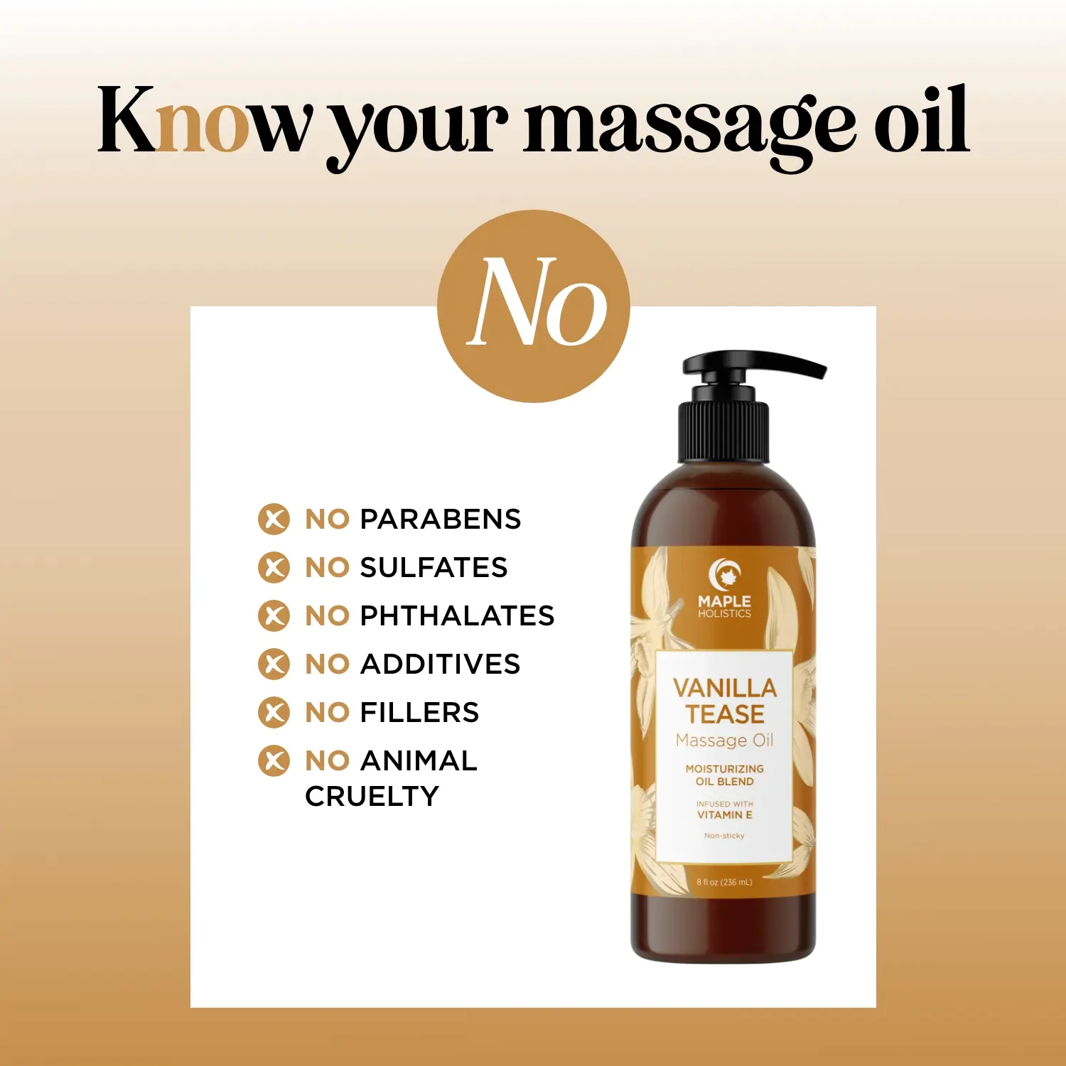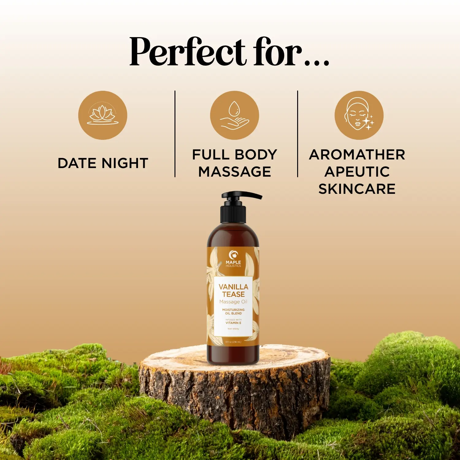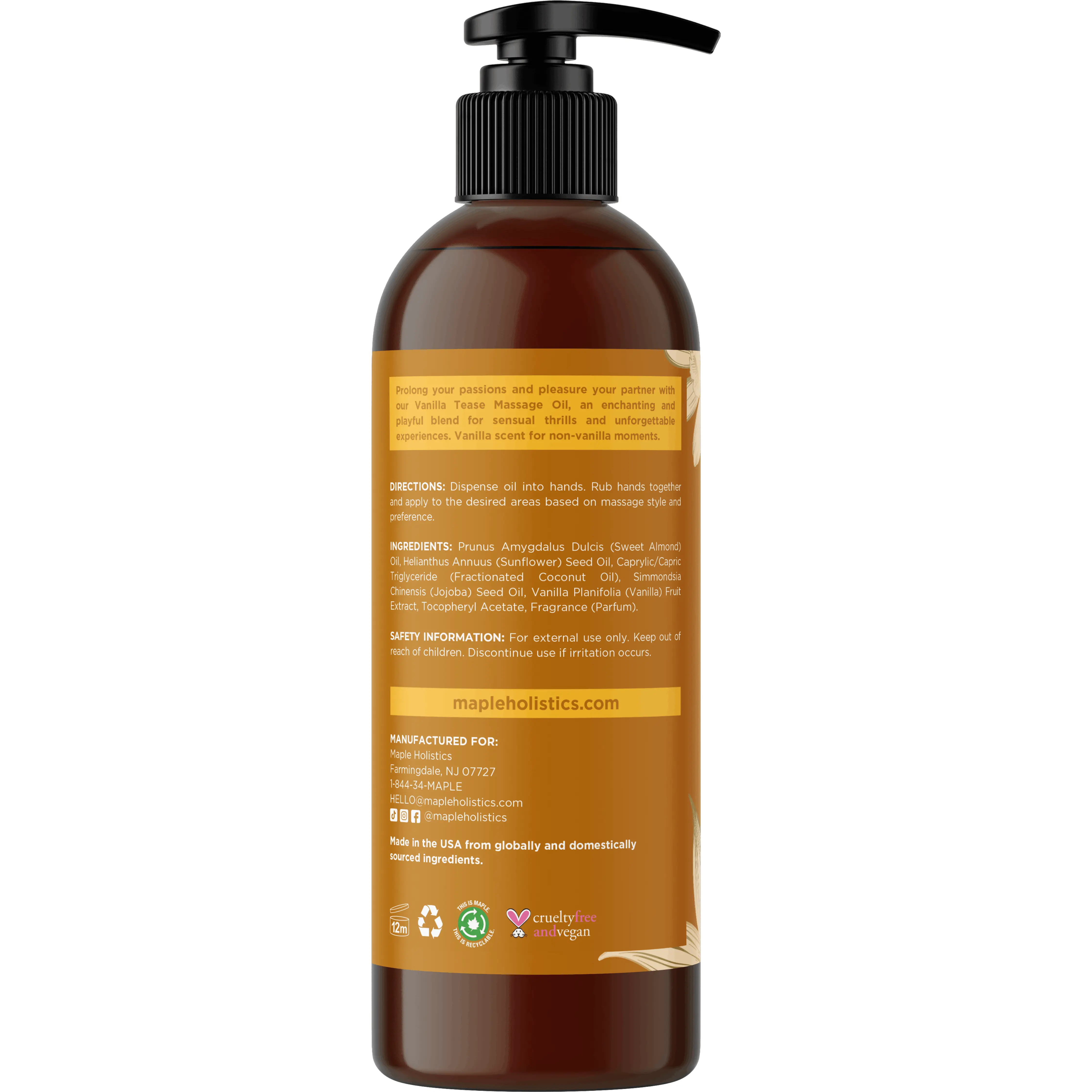 Indulge in a luxurious massage experience with Maple Holistics Vanilla Tease Massage Oil for men and women.