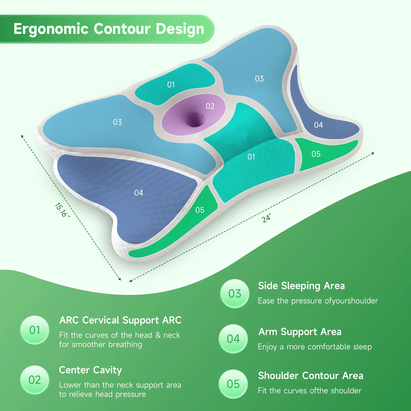 Uniquely designed with an independent neck roll, this pillow gently stretches and relaxes neck muscles, reducing tension before sleep. The contoured center cradles your head, easing pressure, while the ergonomic shape supports healthy spinal alignment.