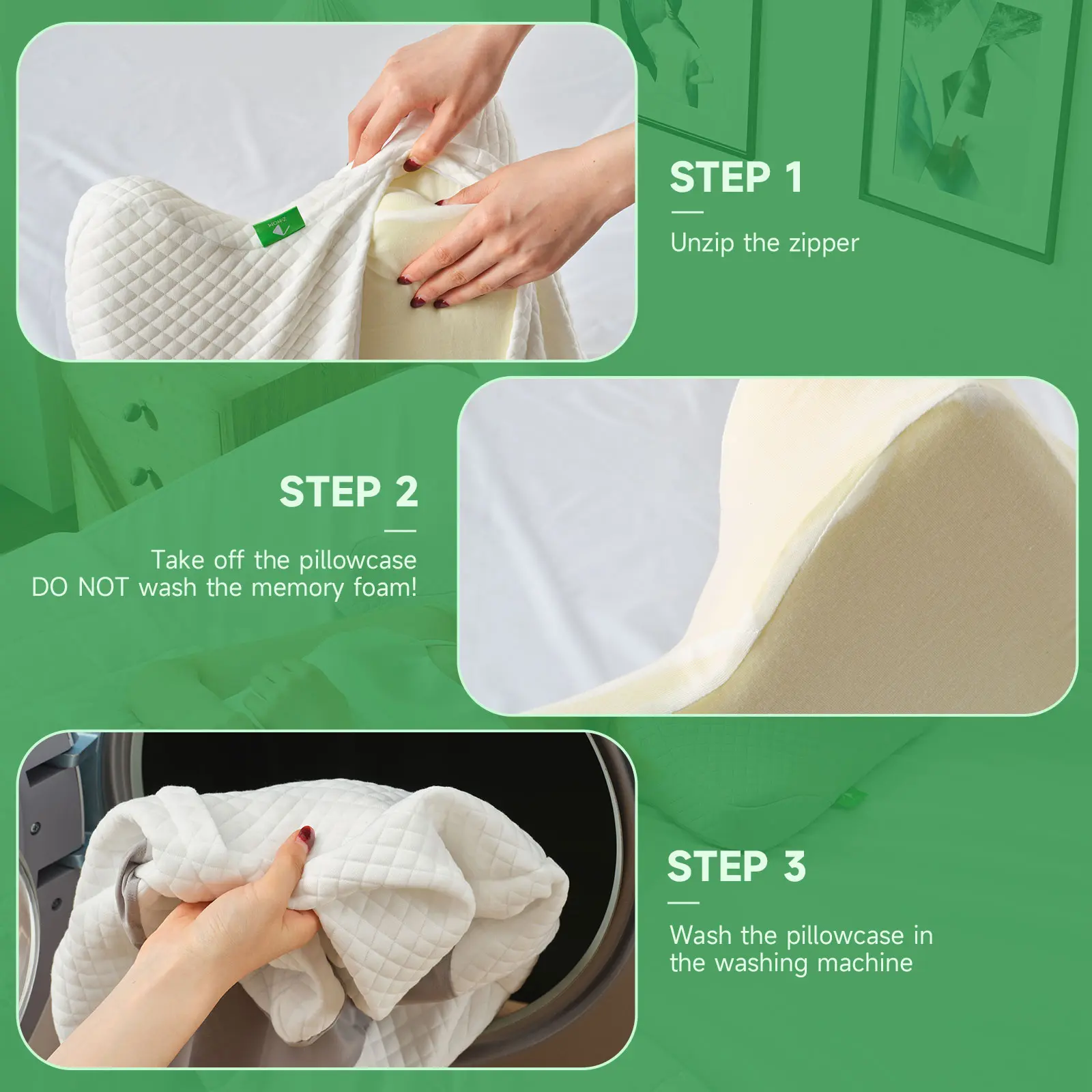 Featuring a smooth zipper, the removable pillowcase is easy to wash, keeping your sleep surface fresh and clean. Durable stitching ensures long-term use, while premium craftsmanship maintains both softness and structure wash after wash.