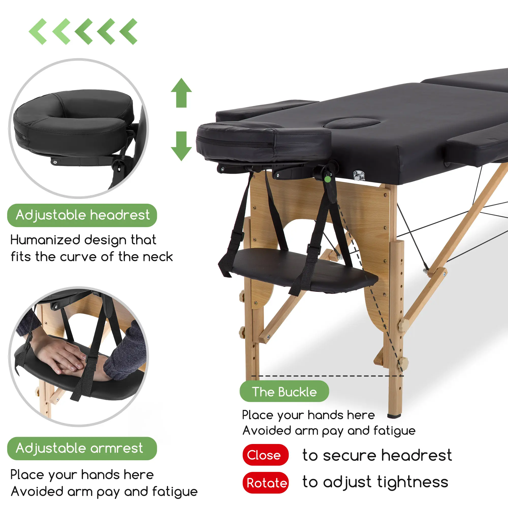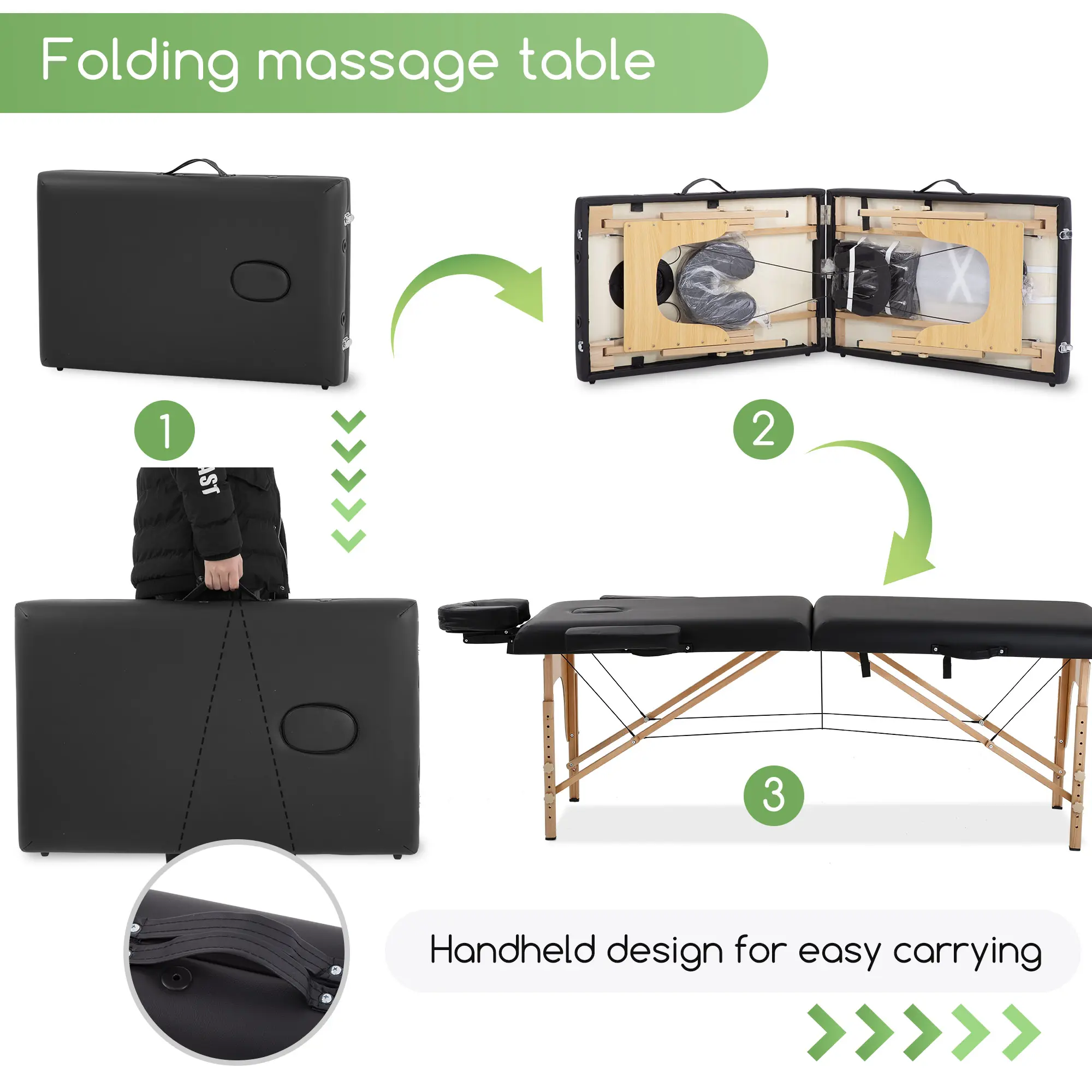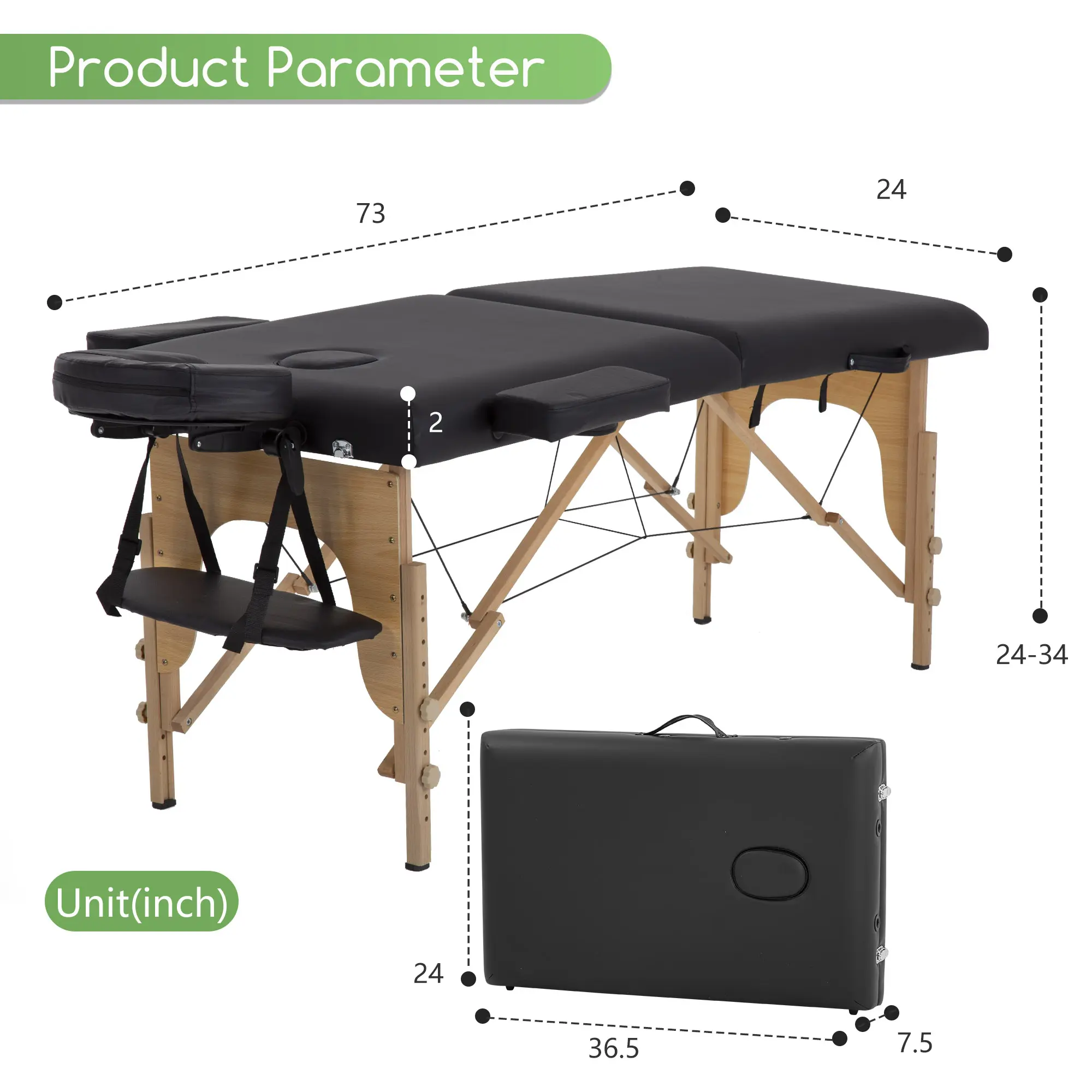 ·【HUMANIZED HEIGHT ADJUSTABLE】: The every sturdy feet of the massage bed are equipped with height-adjustable device. The massage table height adjusted from 24" to 34".The simple height adjustment method is convenient for the masseur to work better with spa bed.Fold massage tale massage bed portable massage table.