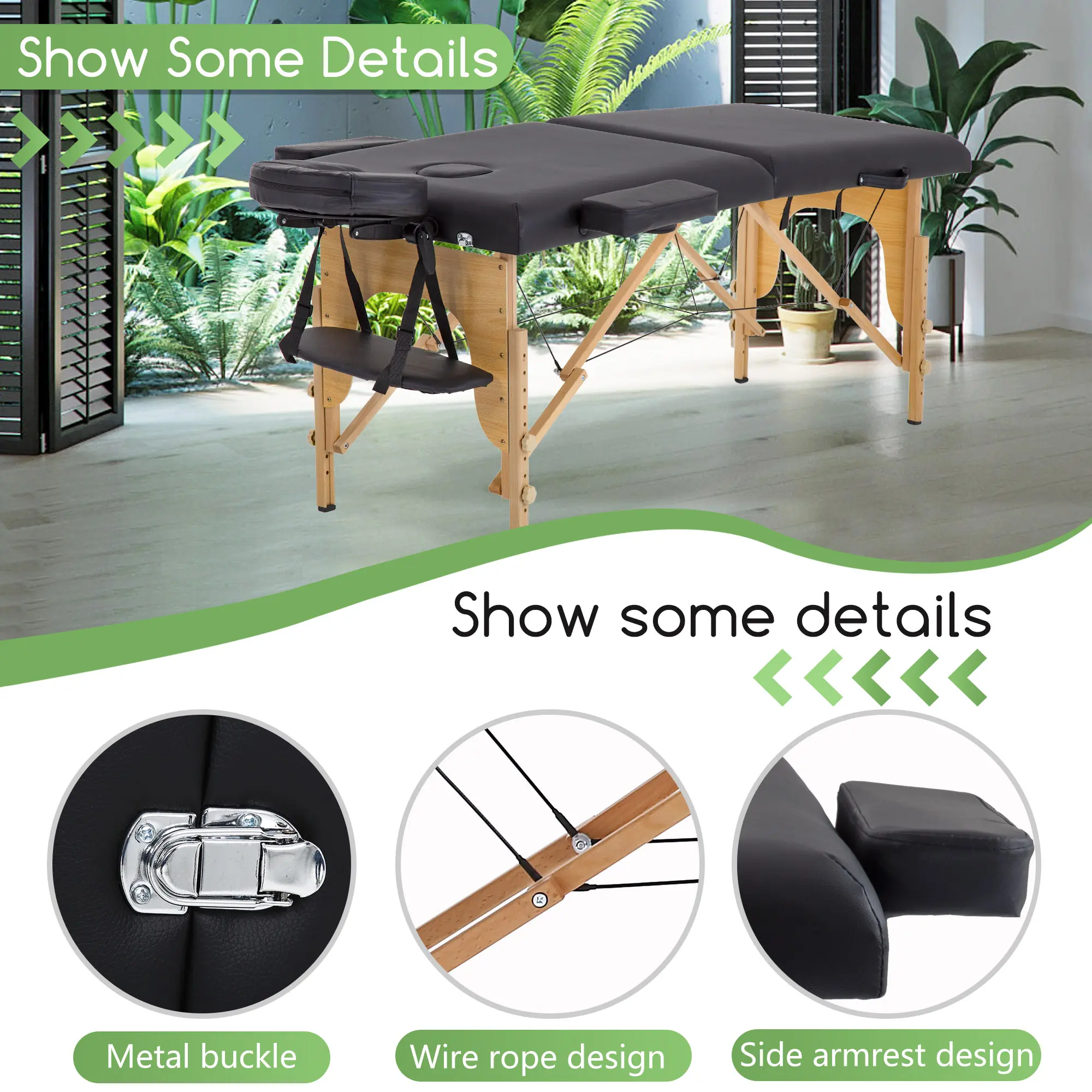 ·【COMFORTABLE & SOFT & STRONG】:The massage table has high density sponge, give you a soft and comfortable experience. The massage table made of reinforced beech frame with support cables , reinforced hardwood corner blocks for superior strength to enable up to 450 lbs on the spa table.Massage table massage bed spa table.