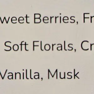 • Fragrance Notes: Sweet, fruity, berries, soft florals, creamy vanilla