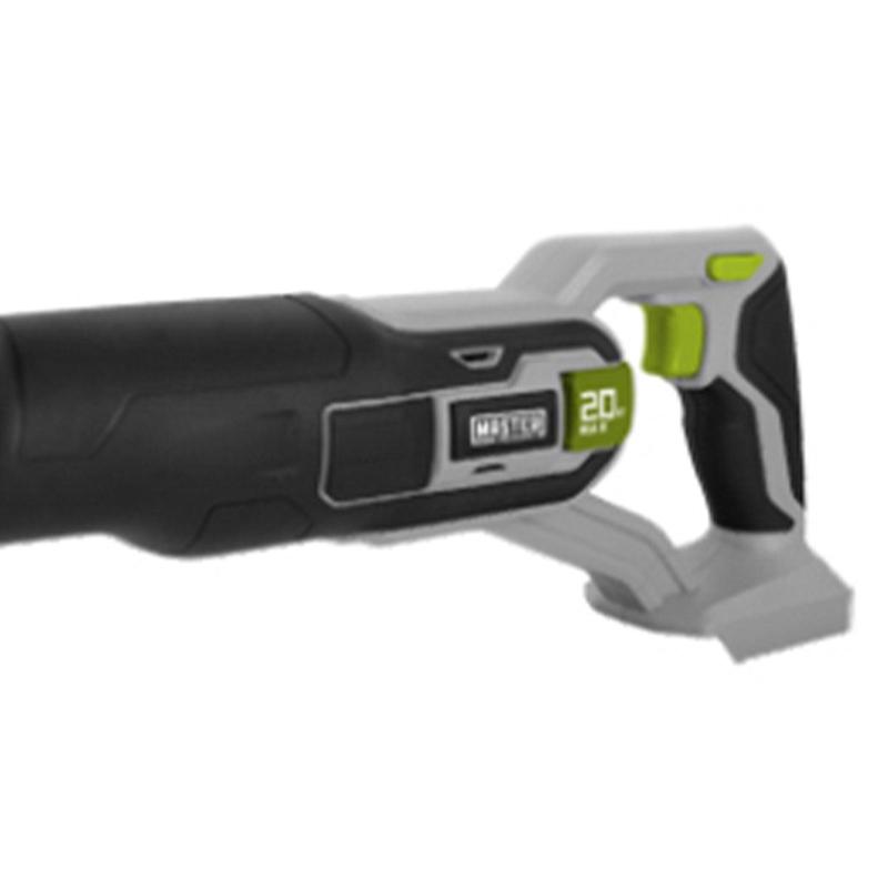 Experience the power and versatility of the Master Mechanic 20-Volt Compact Cordless Reciprocating Saw with Electric Brake.Engineered for precision and efficiency, this high-performance tool features a powerful motor that delivers up to 2,900 strokes per minute, making it perfect for a wide range of cutting tasks. The stroke length ensures fast, efficient cutting, while the toolless blade change system allows for quick and easy blade swaps, enhancing your productivity on the job. Designed with user comfort and safety, this reciprocating saw boasts an over-molded soft grip handle and an additional soft grip cover on the switch, providing superior comfort and control during prolonged use. The pivoting and adjustable shoe offers stability and flexibility, enabling you to make precise cuts in various materials. The lock-out switch ensures added safety, avoiding accidental starts. Illuminate your workspace with the onboard, trigger-activated LED work light, which provides excellent visibility in low-light conditions, ensuring you can see your work clearly at all times.Ideal for both professionals and DIY enthusiasts, the Master Mechanic 20-Volt Compact Cordless Reciprocating Saw is a reliable and indispensable addition to your toolkit. Its compact design makes it easy to handle and maneuver, even in tight spaces, while the electric brake enhances safety by quickly stopping the blade after the trigger is released. Equip yourself with this robust, top-tier saw and tackle your projects with confidence and ease.