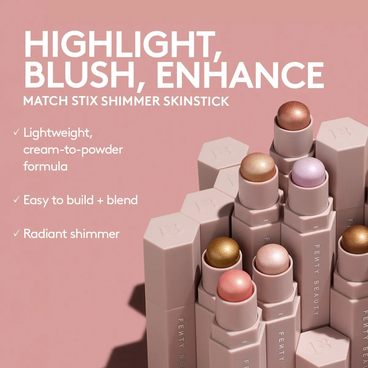 Match Stix Shimmer Skinstick lets you highlight, blush, and enhance in ways you never dreamed of. This longwear cream-to-powder highlighter stick is weightless, blendable, and LIVES to be layered. Mix, match, and multiply with all your fave colors to create a glamorous iridescence.