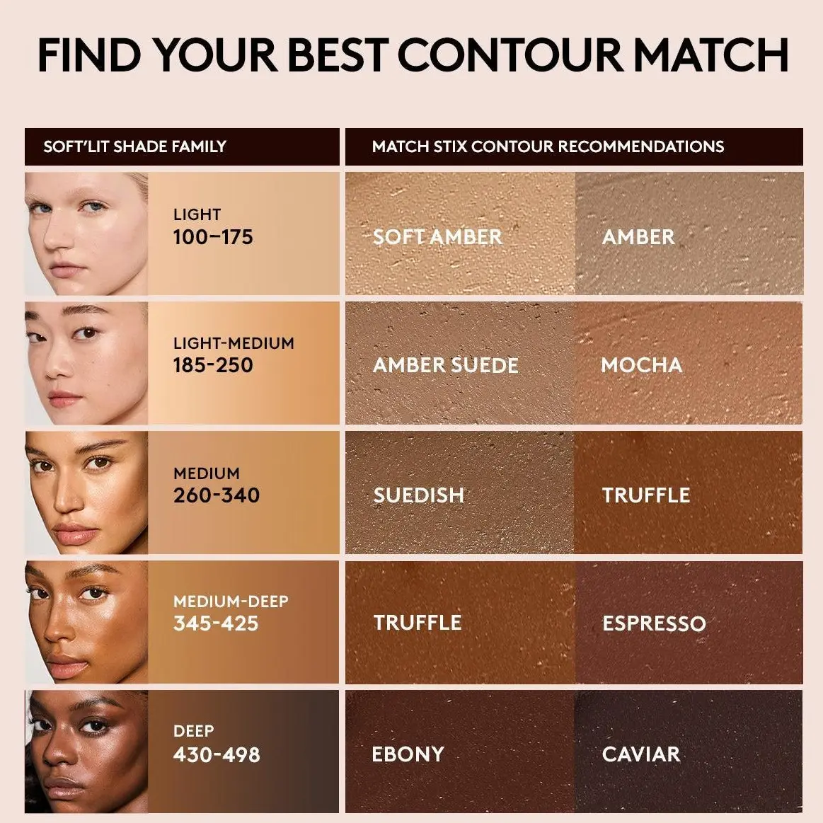 With Match Stix Matte Contour Skinsticks, you can contour in a range of shades obsessively fine-tuned and tested to look good on the full spectrum of skin tones. Plus, they come in an easy-to-use stick format that’s perfect for targeted application anywhere you want to contour.