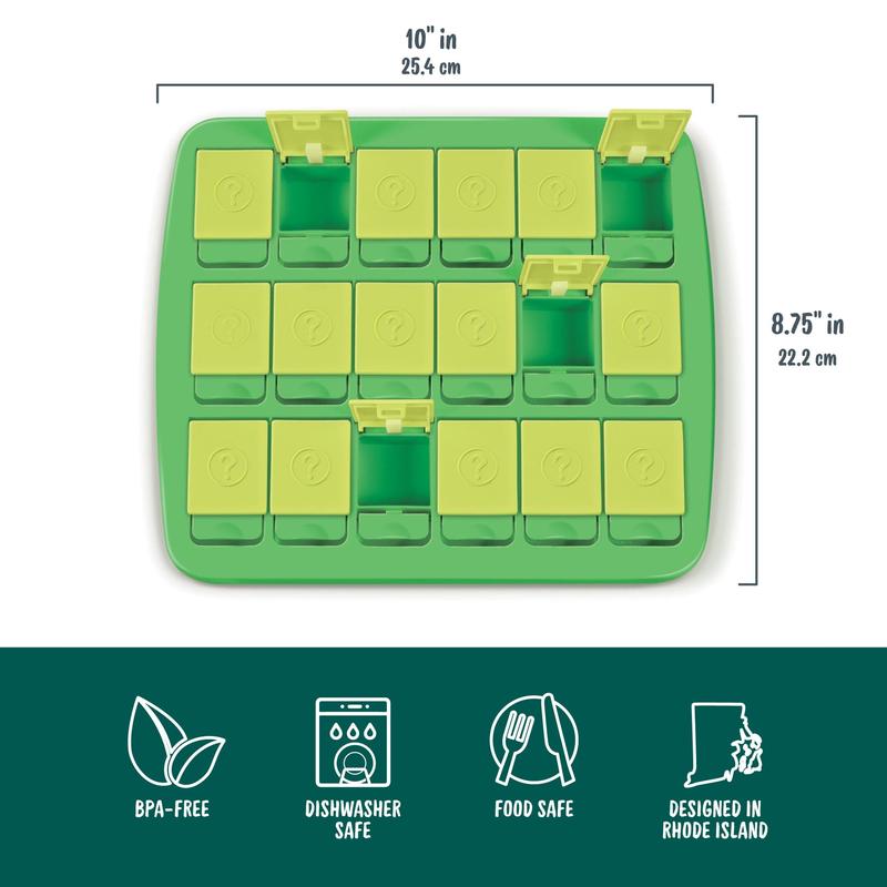Match Up is an interactive snack tray that doubles as a game! Kids will be entertained and inspired to eat as they pop open mystery doors two at a time to find snack matches. It’s just like traditional memory, but with a tasty reward. This travel-friendly tray, contains 18 snack compartments – perfect for tiny hands and growing appetites. Constructed from BPA-free, food safe plastic that is dishwasher safe for easy clean up.