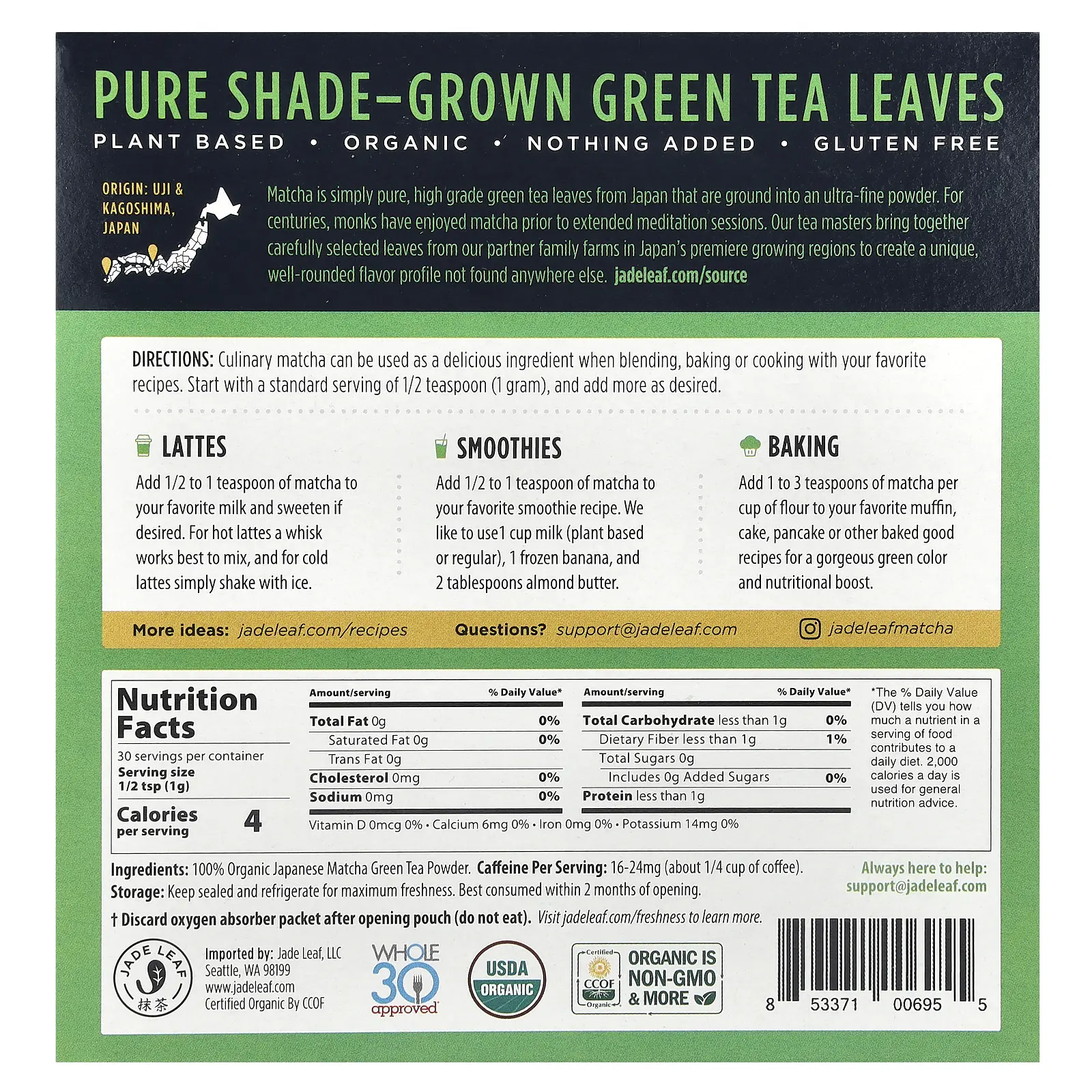 Ingredients100% Organic Japanese matcha green tea