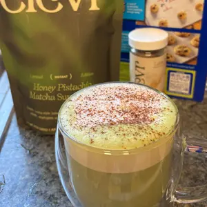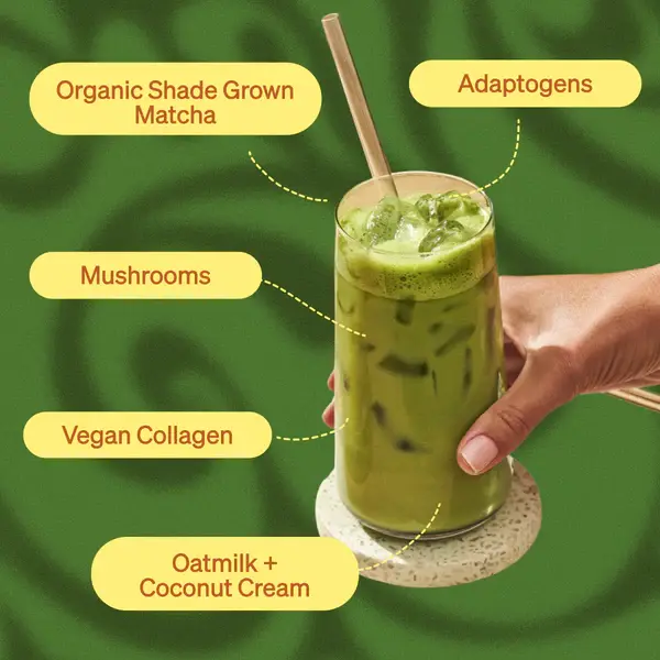 Ingredients: Organic Gluten Free Oatmilk Powder, Monk Fruit Blend* (Erythritol, Monk Fruit Extract), Organic Coconut Cream Powder, Organic Matcha, Organic Ashwagandha Extract, Organic Lion’s Mane Extract, Organic Reishi Extract, Himalayan Pink Salt, Organic Tremella Extract, Sodium Hyaluronate (Edible Hyaluronic Acid), Honey Distillate, Tocopherols*, Natural Flavor, Pistachio Extract, Green Tea Extract*