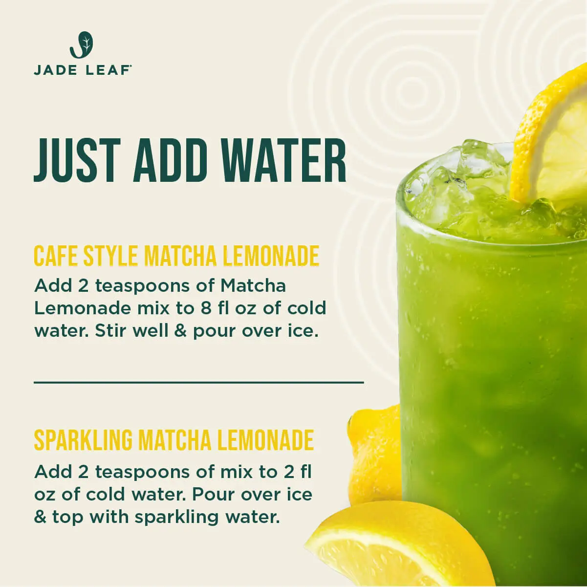 I love Jade Leaf Matcha and lemonade is great for hot summer days.