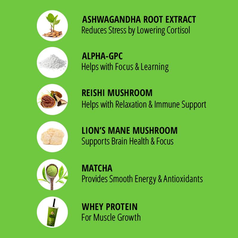 With the new mushroom ingredients added, I definitely feel it helps with boost up my energy level at the same time provide good amount of protein. The flavor is matcha plus a little bit extra herb flavor. I would say it taste a little be funky at first time but I kinda get used to it after several tries. I would recommend whoever want a mushroom boost to have a try.