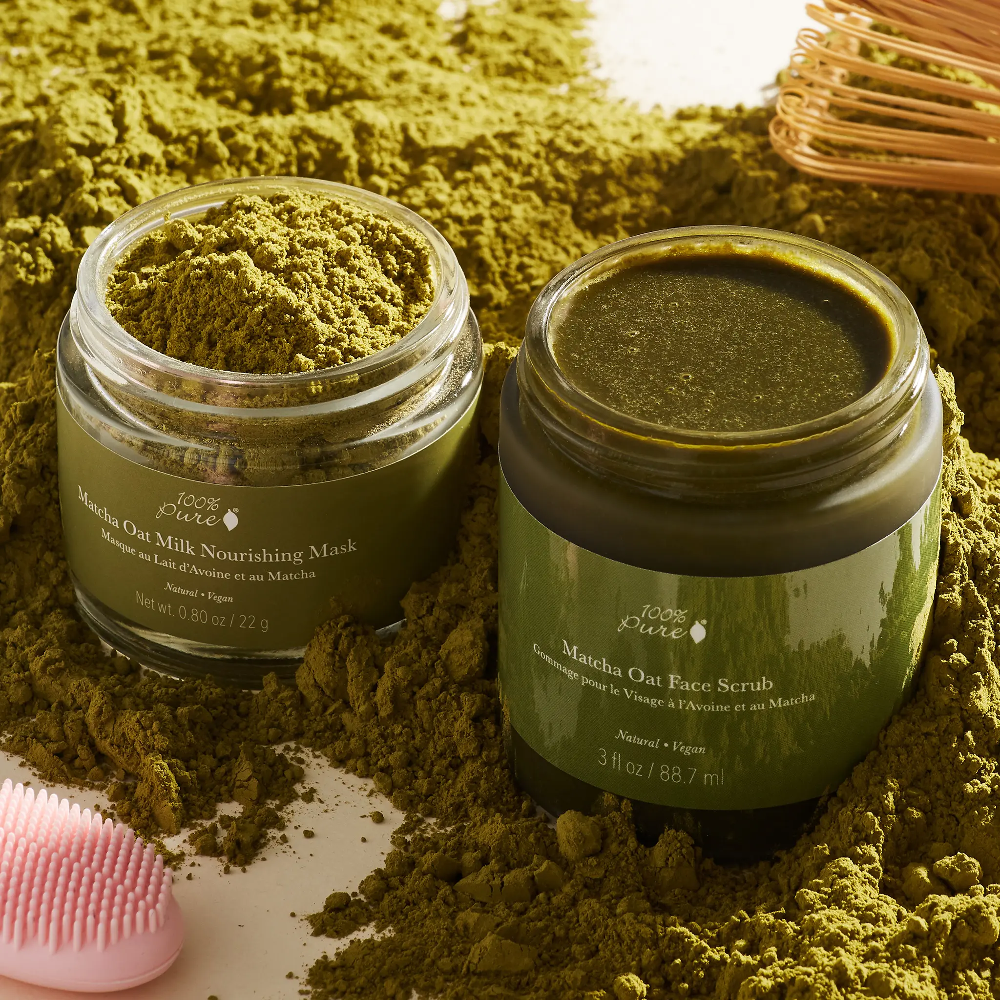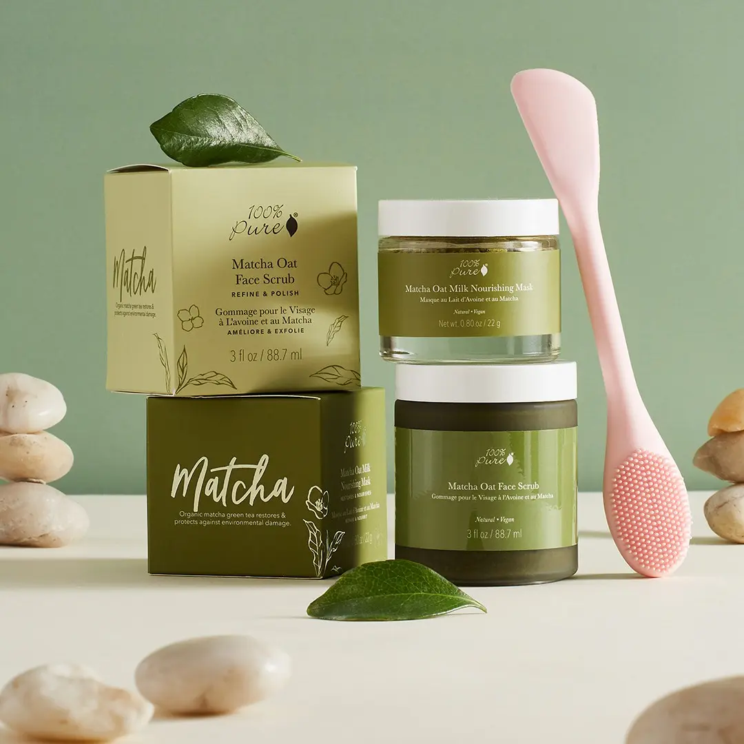 Experience the double delight of our Matcha Oat Face Scrub and the soothing Matcha Oat Milk Nourishing Mask. Green tea goodness for your skin ritual! #MatchaMagic #SkincareDelight #100percentpure #CleanSkincare #cleanbeauty #facescrub #facemask #matchafacemask