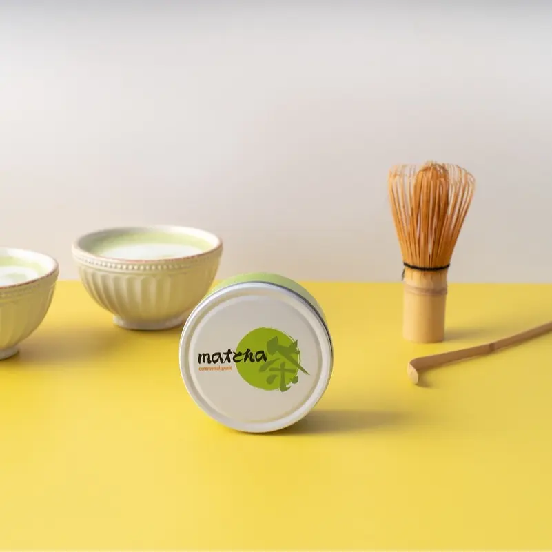 Matcha, the focal point of the Japanese Tea Ceremony, is a fine powder made by grinding green tea leaves.