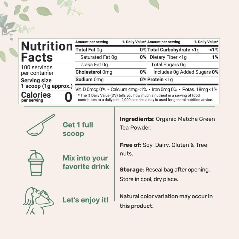 ·Each pouch contains 100 grams of raw powder, providing approximately 100 servings.