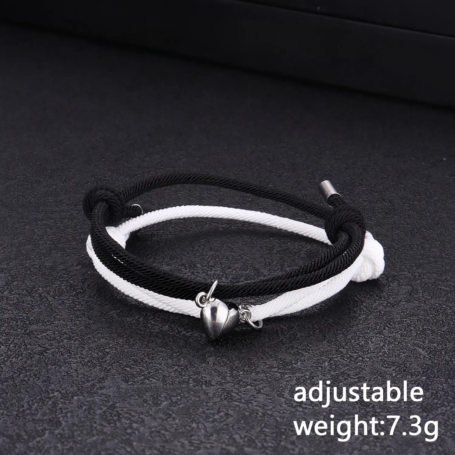 4. Size & Weight: The bracelets for couples can be adjusted to 60-85mm (2.36”-3.35”) with a rope thickness of about 2.5mm and a weight of 7.3g, making them suitable for anyone.