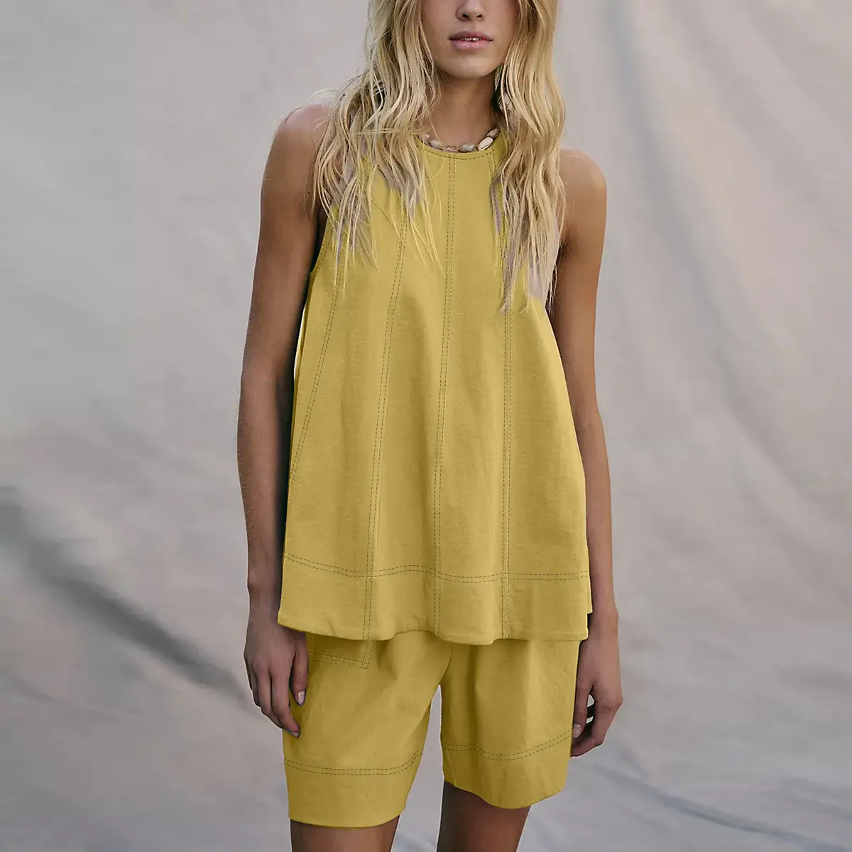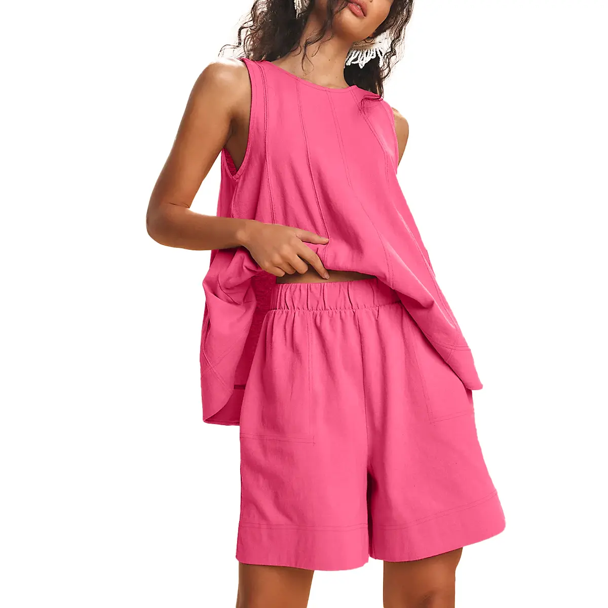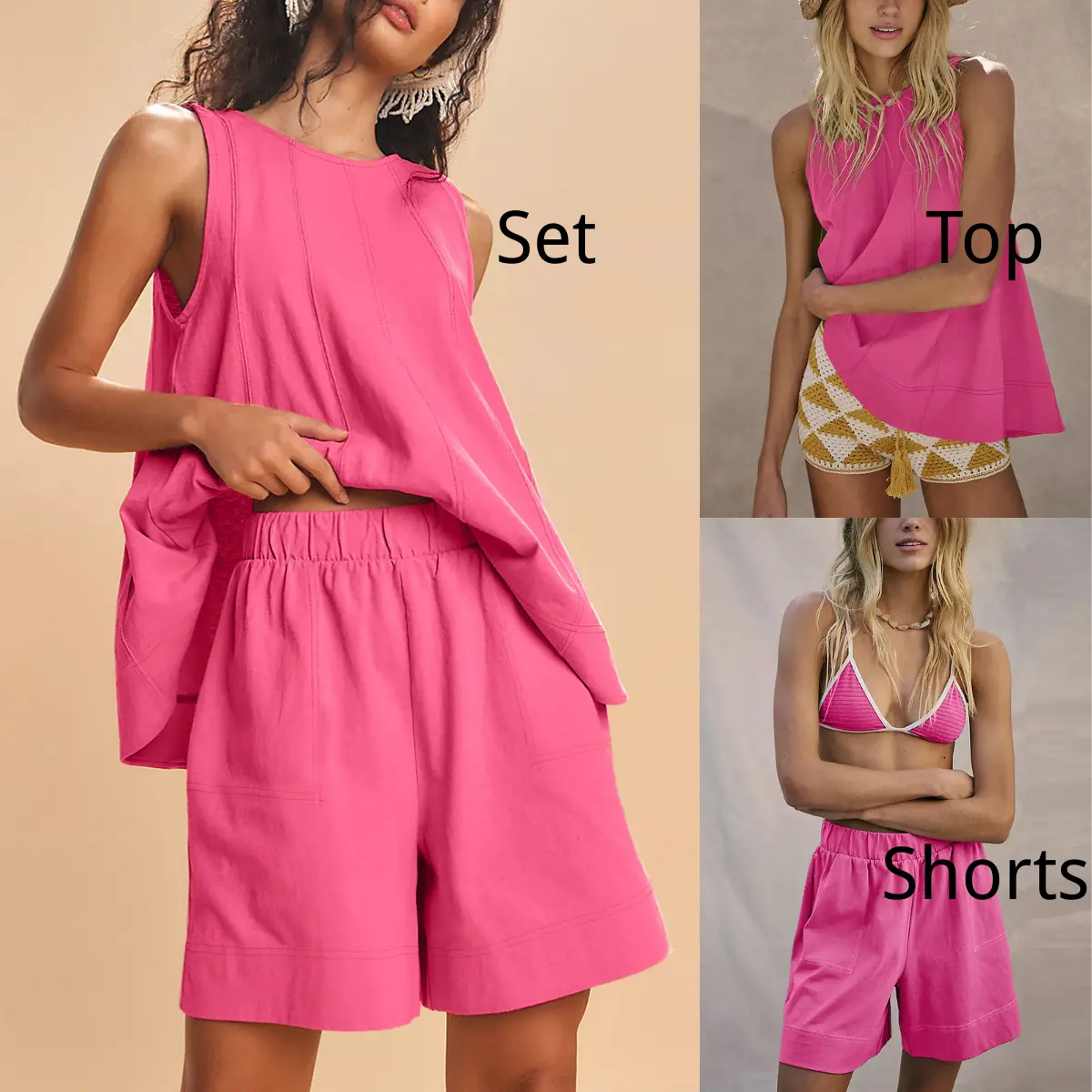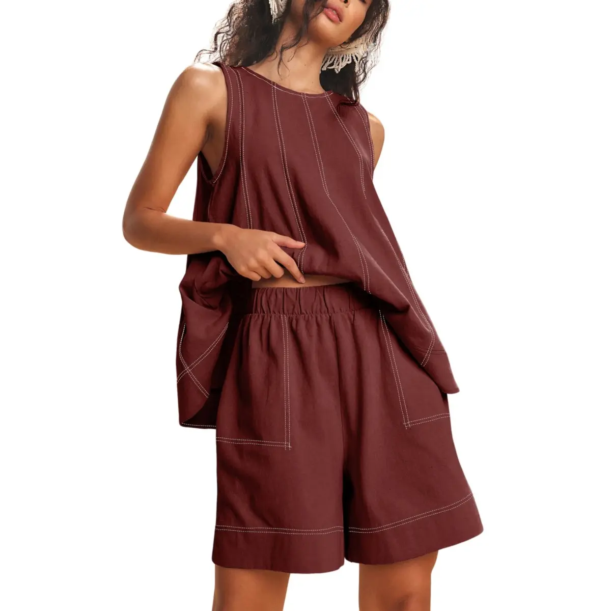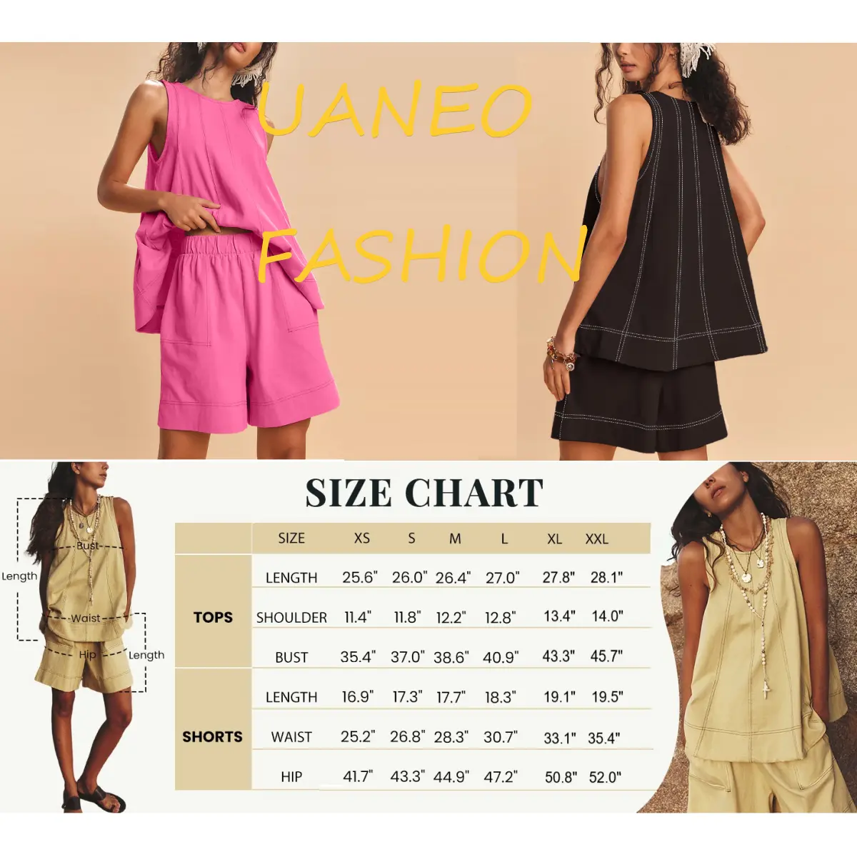 ·Feature: This summer matching sets feature with the high neckline, dropped armholes, contrast stitch seaming, Pull-on design, side pockets, coordinating stitching