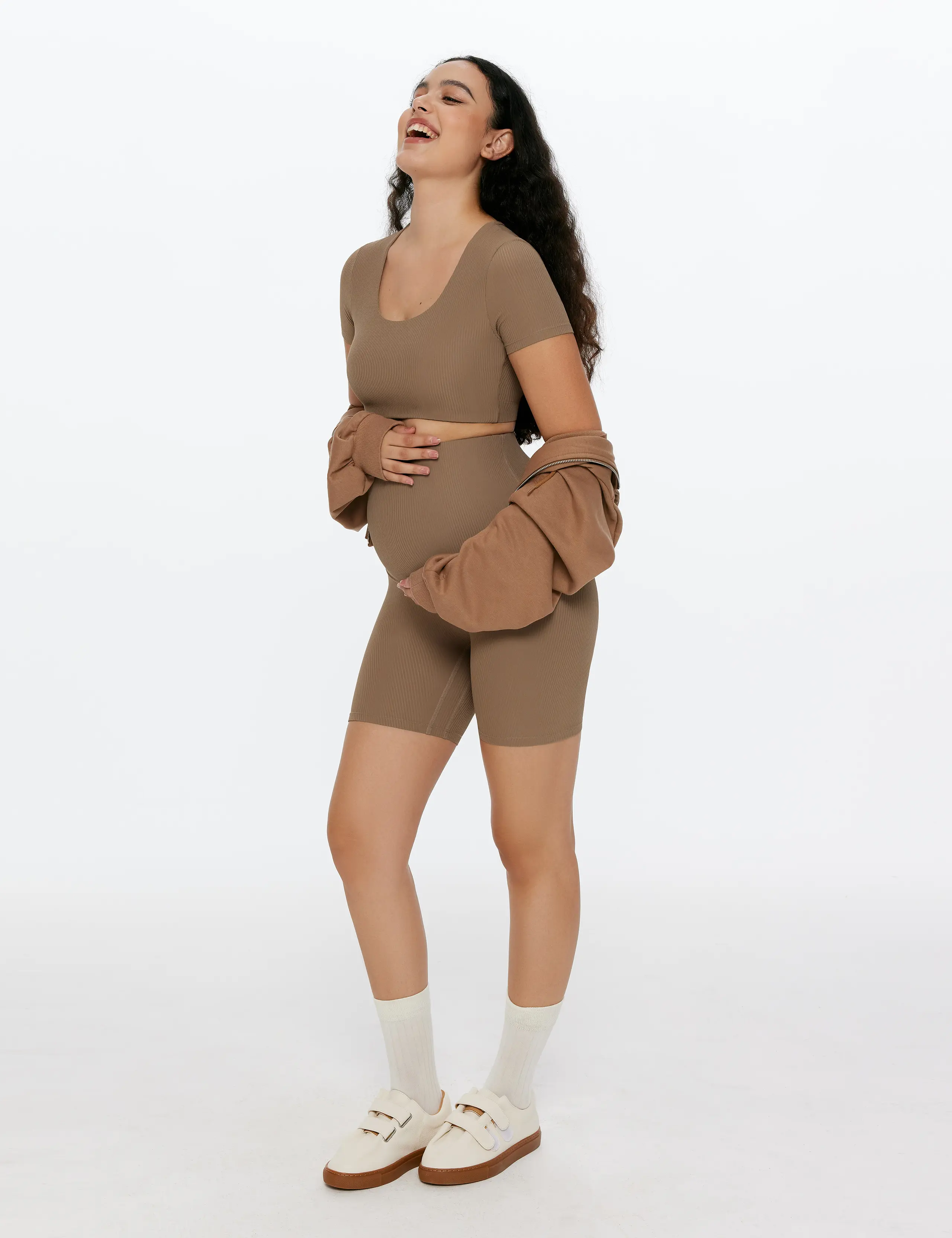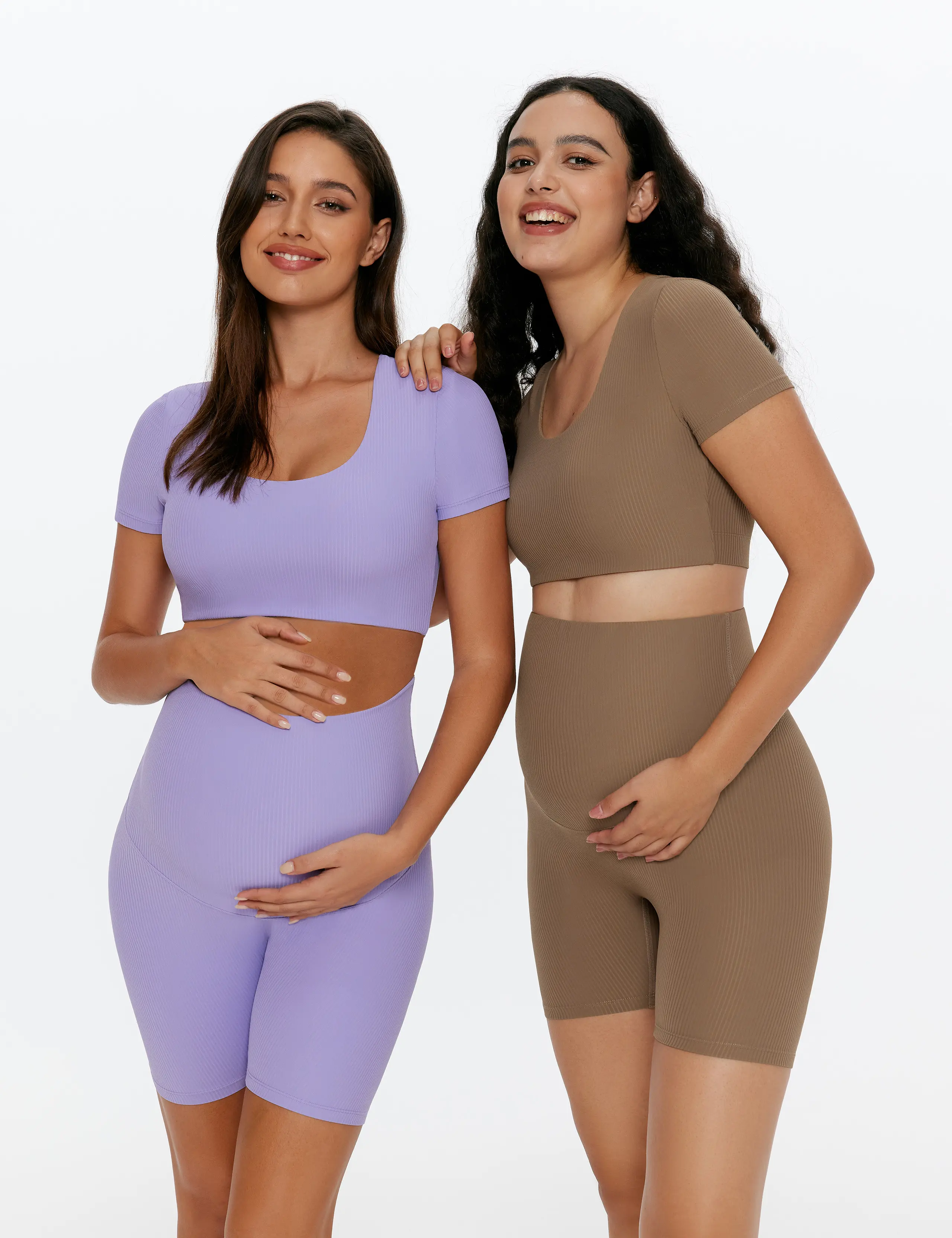 Buttery-soft, Ribbed Fabric: Revel in a lightweight and quick-drying experience with our durable blend of 77% nylon and 33% elastane, ensuring a cool and comfortable and breathable fit throughout your pregnancy.