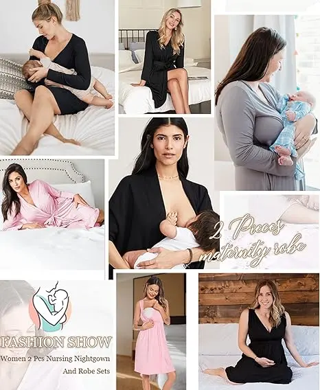 ·【2 Pcs Nursing Nightgown and Robe Set】This 2 Piece soft nursing gown sets with the greatest design can be the perfect nightgown choice for pregnancy, labor, and post-pregnancy. A must-have in your hospital bag ,to refuse the hospital delivery gowns, nursing nightgowns and robes will provide you with the most comfortable and breathable wearing experience.